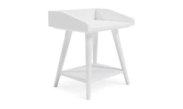 Display your decor with simple style on this accent table. Constructed of wood and engineered wood in a crisp, white finish, this table blends easily with your existing living room aesthetic or stands in as a kid's bedside table. A gallery rail top, undermount shelf and dual USB chargers keep your life (and your look) simply sensational.