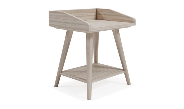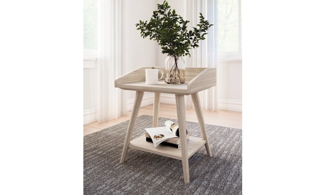 Display decor with simple style on this artful accent table. Constructed of wood, engineered wood and veneer in a light tan finish, it blends easily with your existing living room aesthetic. A gallery rail top, undermount shelf and dual USB chargers keep your life (and your look) simply sensational.