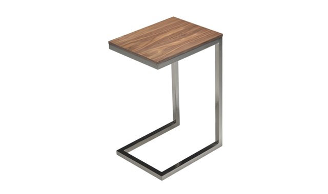 Side table with walnut top and chrome base.