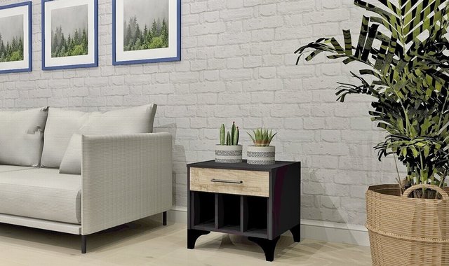 The MEQ model 6546-TB end table in melamine and vintage oak veneer with a black finish and metal furniture legs adds enhanced style to your living room. This end table is the epitome of elegance and modernity, adding a sophisticated touch to your living space. Crafted with high-quality materials, including durable melamine and vintage oak veneer, it combines refined aesthetics with exceptional durability. The black finish adds a touch of sophistication and chic to your living room, creating a striking contrast with the metallic accents of the furniture legs. These legs add a touch of modernity and stability while providing sturdy support for your decorative items or accent lamp. With its generous surface, this end table offers a perfect space to place your drinks, books, or favorite decorative items, adding functionality to its elegant style. Add the MEQ model 6546-TB end table to your living room for a touch of sophistication and practicality that will impress your guests and elevate the overall aesthetic of your living space.