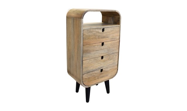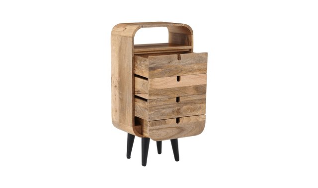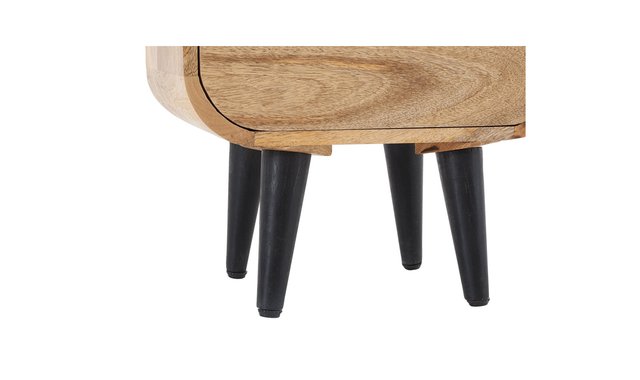 With a modern design that uses curves with style, this natural-finish cabinet matches a fashionable decor. It showcases the cascading green plants that are placed inside. No assembled.