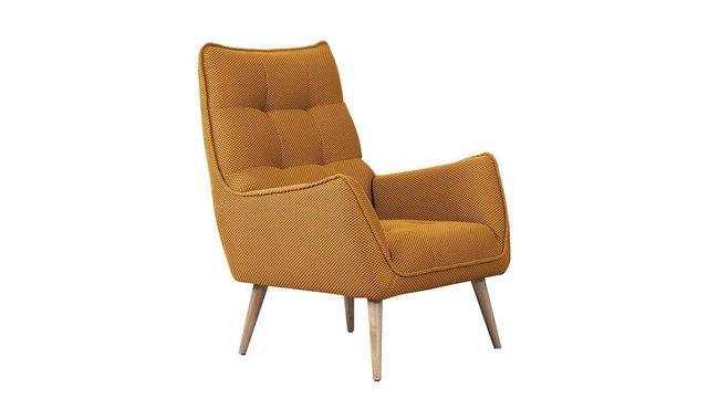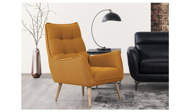 Mirtel contemporary accent chair features button tufted seat and back, and wooden legs.