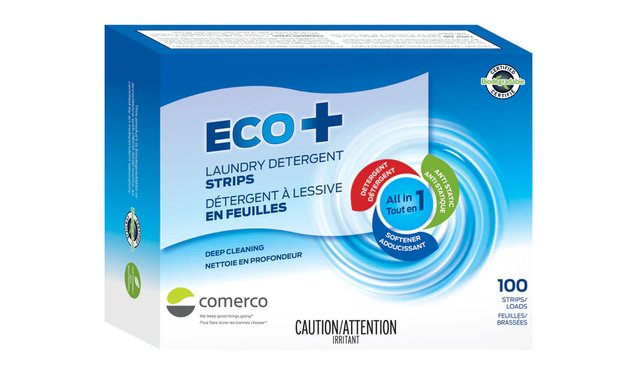 ECO+ Laundry Detergent Strips provide an all-in-one solution for your laundry needs. One strip is sufficient for a load. Each ultra-concentrated strip combines detergent, softener, and antistatic properties and fully dissolves in both hot and cold water. More convenient than pods or liquids, ECO+ strips are also environmentally friendly, eliminating the use of plastic bottles and water, while reducing greenhouse gas emissions. Ideal for all types of washing machines.