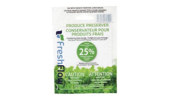 The Produce preserver replacement filters absorb ethylene allowing the ripening process of many produce items to slow down. As a results, certain produce items will stay fresh longer that are kept in your crisper drawer. It extends freshness of produce up to 25%. This kit includes 2 replacement filters and 1 status indicator which will be put in the housing in your crisper drawer. The status indicator helps you remember to change the pouches. Replace pouches and status indicator every six months for optimal freshness. The Produce Preserver Starter Kit which will include the housing, 2 filters and 1 status indicator is part number W11462816 This kit includes 2 replacement filters and 1 status indicator which will be put in the housing in your crisper drawer Extends freshness of produce up to 25%