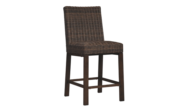 Pretty enough for trendy interiors, yet durable enough to weather the elements, this outdoor bar stool rises to the challenge beautifully. Handwoven resin wicker over rust-proof aluminum merges high style with low maintenance. Rest assured, the exposed frame only looks like wood. Its sturdy aluminum construction is perfectly suited for al fresco living.