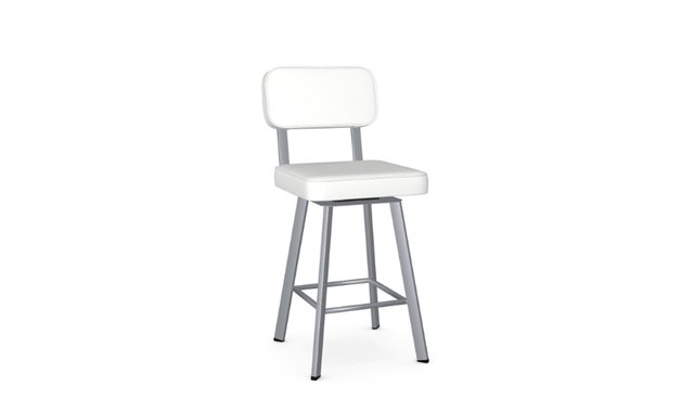 Counter-height stool from Amisco. Brixton swivel model. Metal Structure Color: 24 Magnetite. Seat and backrest upholstered in DH blizzard color in polyurethane.