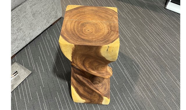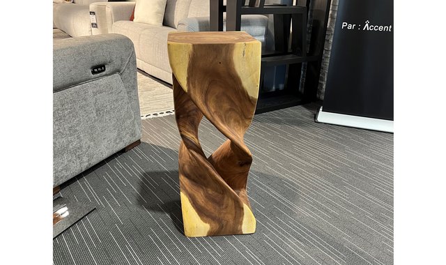 Twist stool by Corcoran. Made with suar wood. Ultra resistant indonesian wood. Unique model. Sold as is.