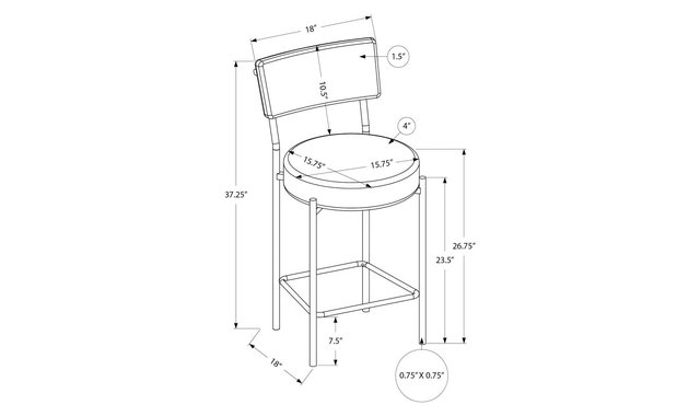 - Maximum seat height : 26.75 in