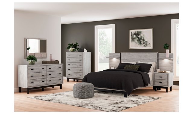 Craft a contemporary hideaway without breaking the bank. An elegant juxtaposition of refined neutral hues, the two-toned Vessalli queen panel bed with extensions brings sleek style to your space. The sheer simplicity of its profile stunningly frames your mattress, while LED lighting adds a layer of chic functionality. With this piece, a bedroom brimming with luxury has never been more attainable.