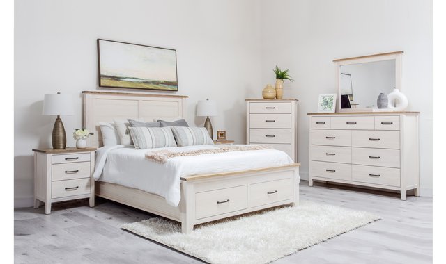 Additionnal Information: Bedroom set including double dresser, mirror, queen storage bed and 1 nightstand