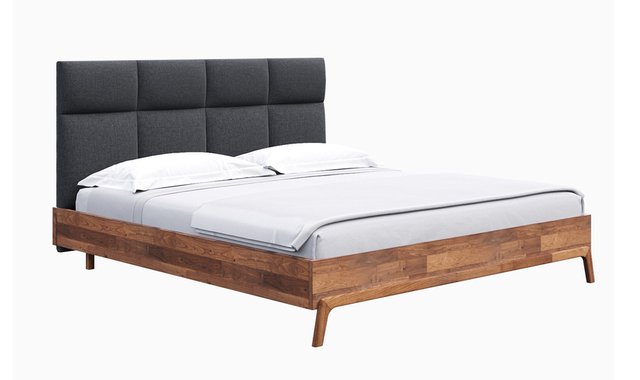 Solid Rubberwood legs Wooden slats Solid Acacia Backs and bottoms of drawers: Acacia veneer on plywood Polyester 100% Headboard Height: 44" Grey fabric