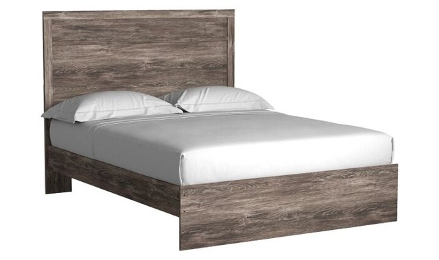 With its clean-lined look and modern attitude, this queen panel bed is a fresh style awakening. Warm gray hue over replicated oak grain easily complements other furniture finishes. Simple, unadorned profile is given depth and dimension with the addition of plank style moulding on the headboard—proof that beauty lies in the details.