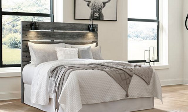 Rest in the beachy style of this queen panel bed. Its driftwood and surfer-inspired smoky finish and sleek sconce lights give this headboard a rustic look that's perfect for creating an island oasis. Clean lines and modern charm blend for an authentic look to be enjoyed for years to come.