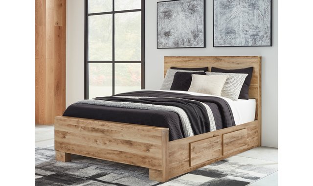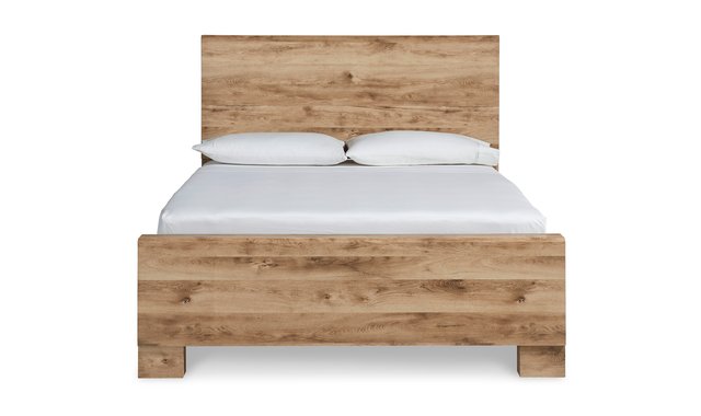 Inspired by natural beauty, refined to perfection. This queen panel bed brings cozy outdoor vibes to your bedroom with its warm and inviting golden rustic finish. Simple and streamlined, this piece adds a subtle touch of authentic style to your space.