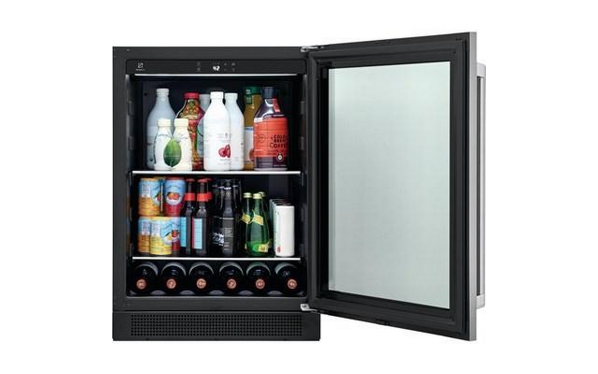This 24-inch wide Electrolux beverage center refrigerator features digital control, door ajar alarm and a 5.1 cu.ft. capacity.