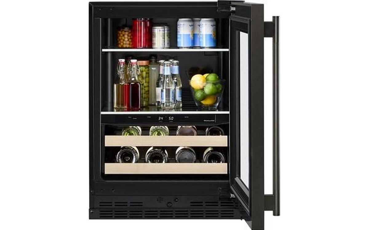 KitchenAid 24-inch beverage center with glass door and a total capacity of 4.8 cu. ft.
