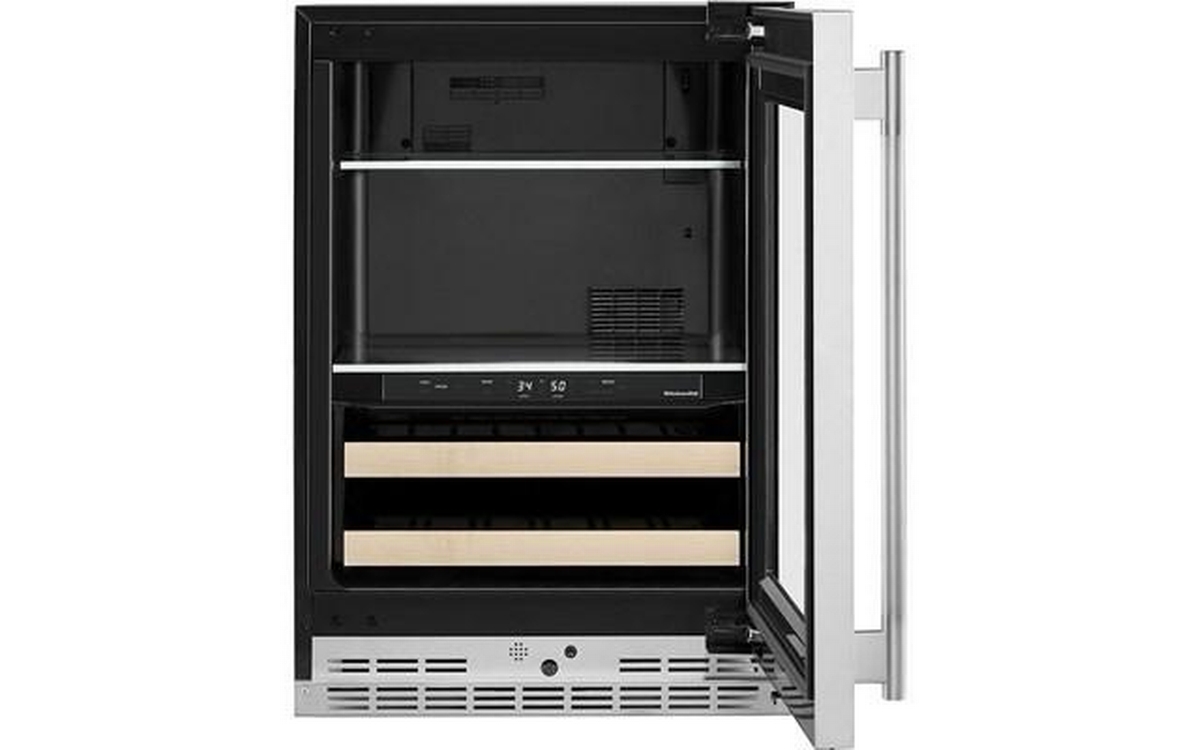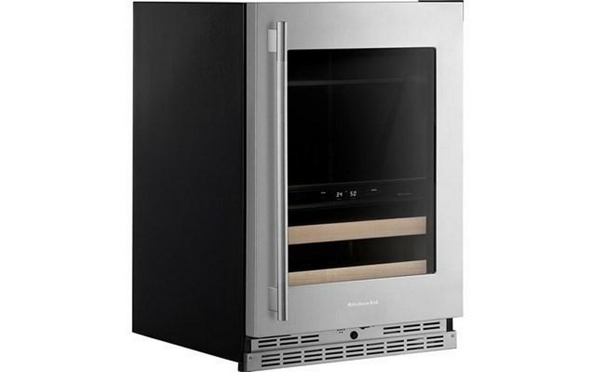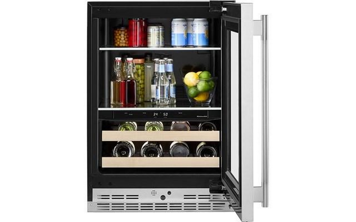 KitchenAid 24-inch beverage center with glass door and a total capacity of 4.8 cu. ft.