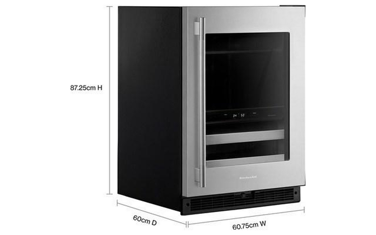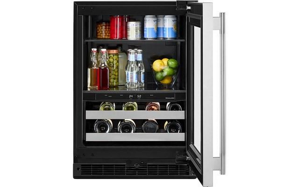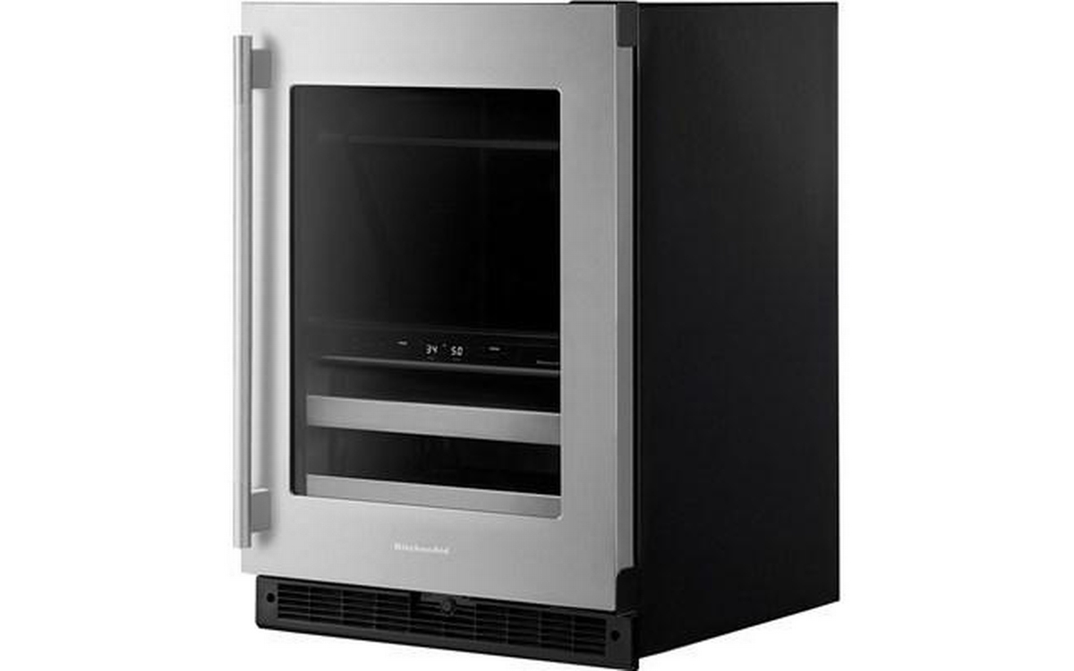 KitchenAid 24-inch beverage center with glass door and a total capacity of 4.8 cu. ft.
