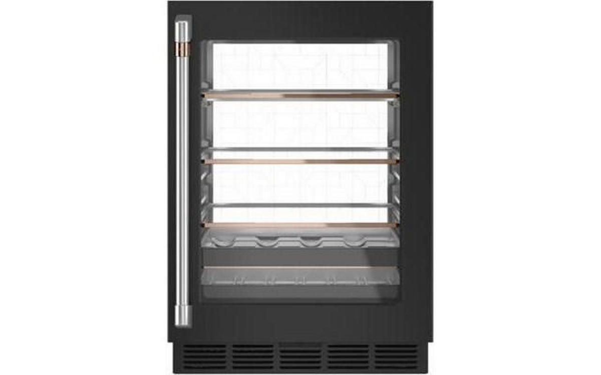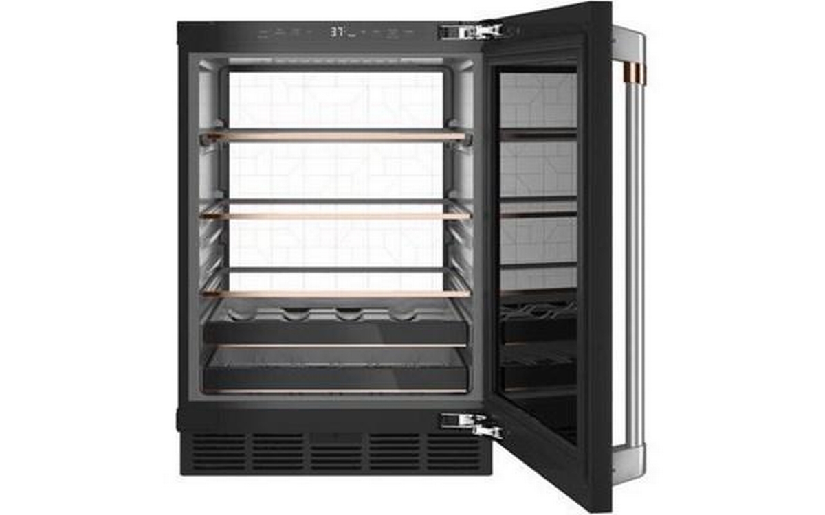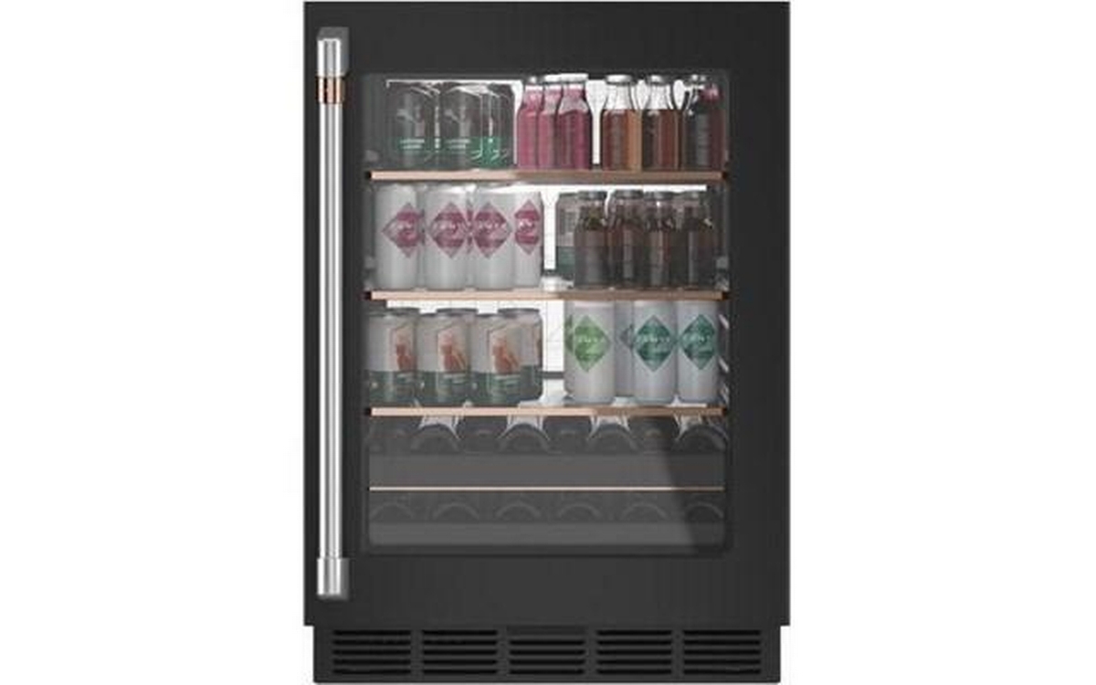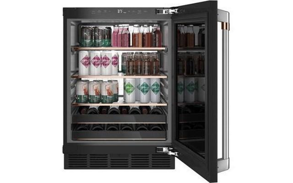 This Café beverage center features LED lighting, adjustable temperature control, auto defrost and a total capacity of 5.1 cu.ft.