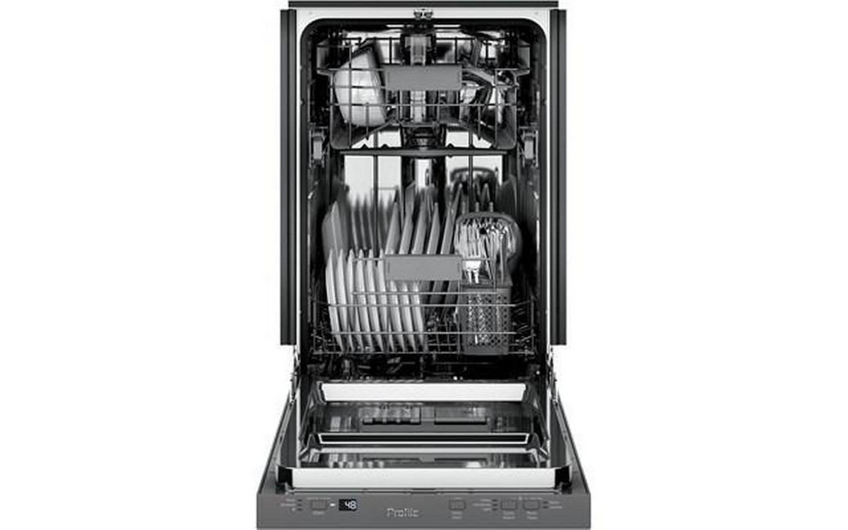 This GE Profile Series 18" built-in top control dishwasher features Piranha™ hard food disposer, clean sensor and can accommodate up to 8 place settings.