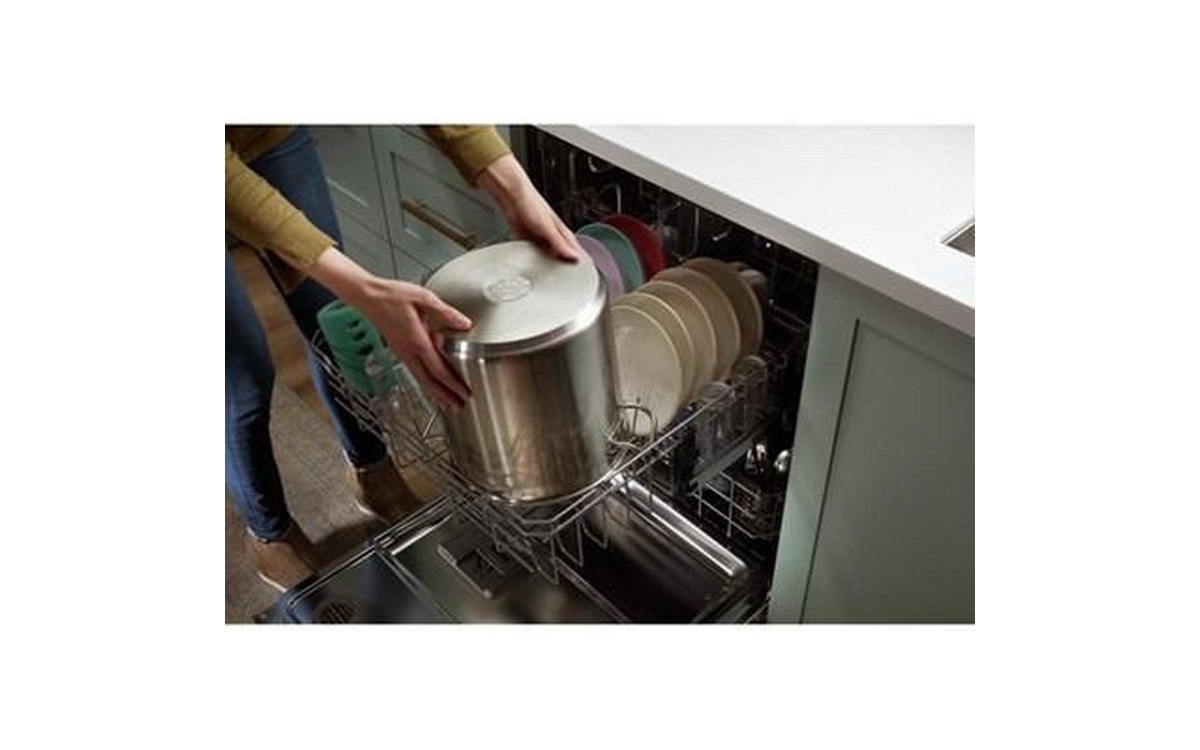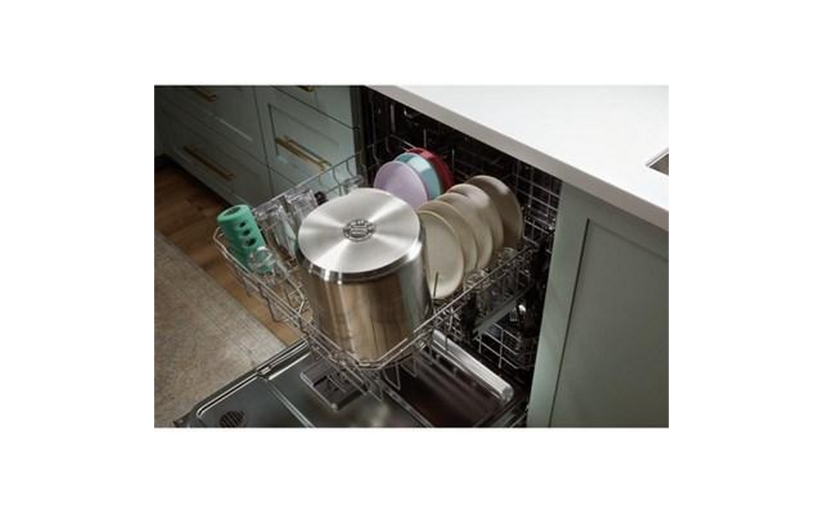 Load more, run less in this large capacity dishwasher. With a Top Rack tall enough to fit a stock pot, you can fit all the dishes your family piles up. Plus, you can move or separate the flexible 3-Piece Silverware Basket to make extra space for large pans and casserole dishes.
