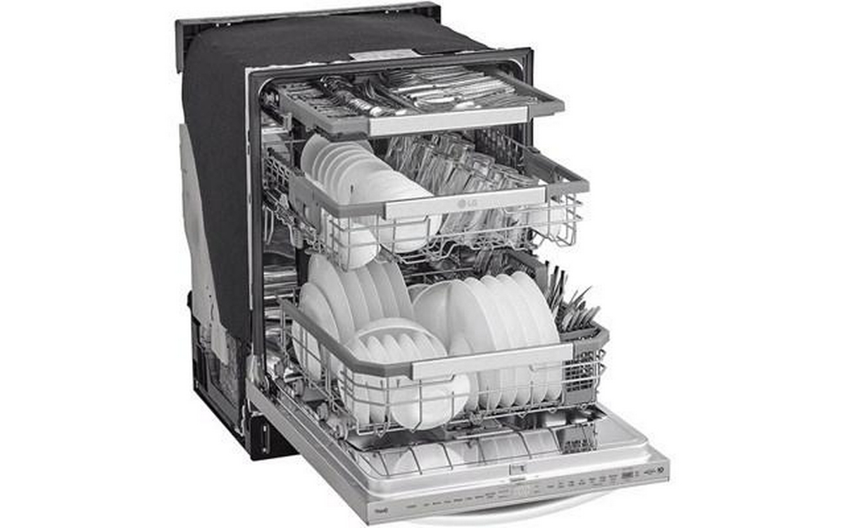 This 24-inch wide LG Smart Top Control Dishwasher features 1-Hour Wash & Dry, QuadWash™ Pro, Dynamic Heat Dry, TrueSteam® and can accommodate up to 15 place settings.