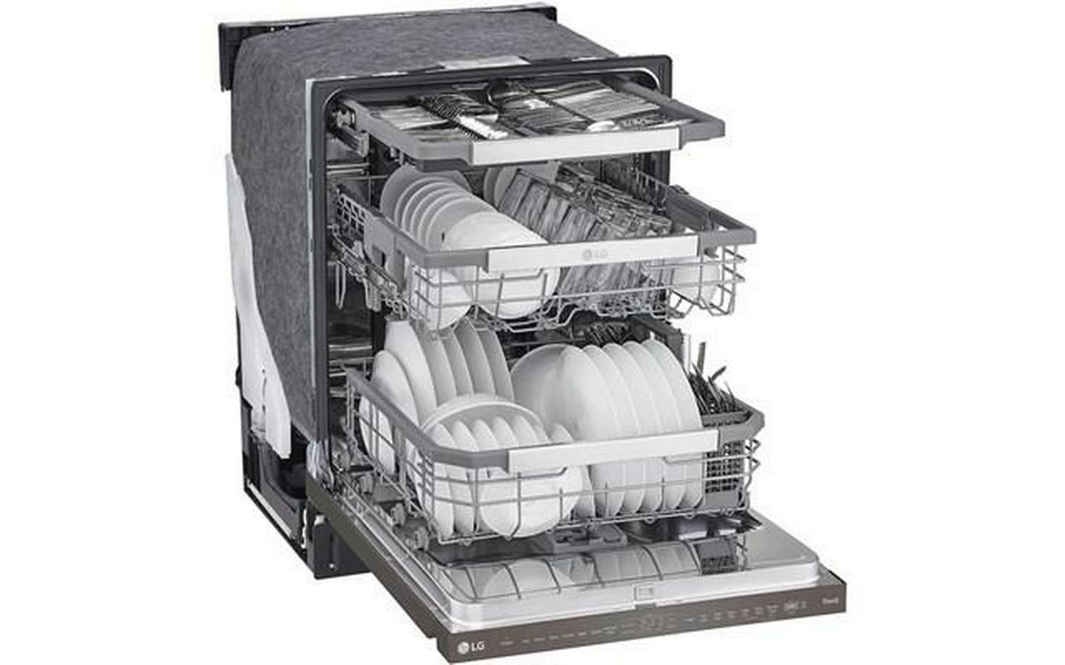 LG 24-inch smart top control dishwasher features QuadWash® Pro, TrueSteam®, Dynamic Dry®, and can accommodate up to 15 place settings.