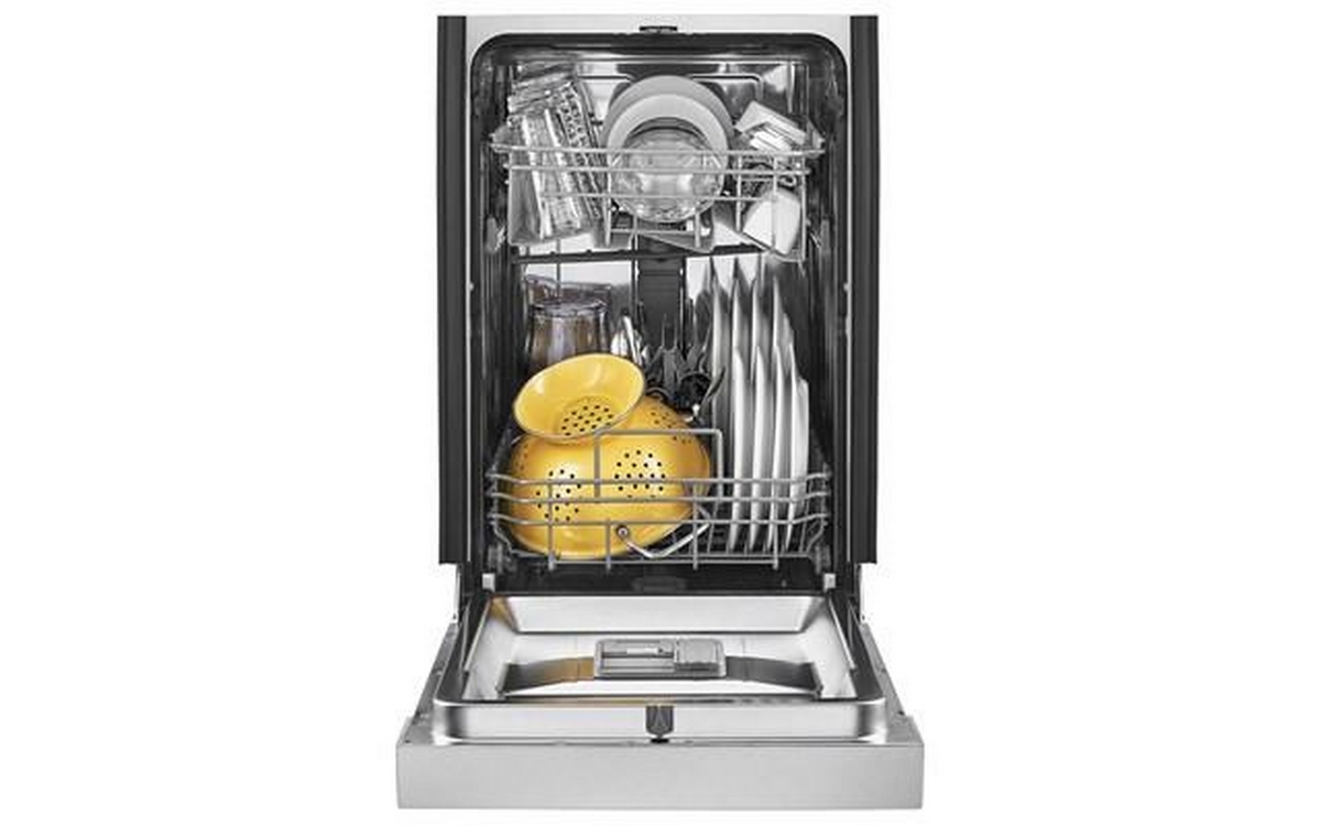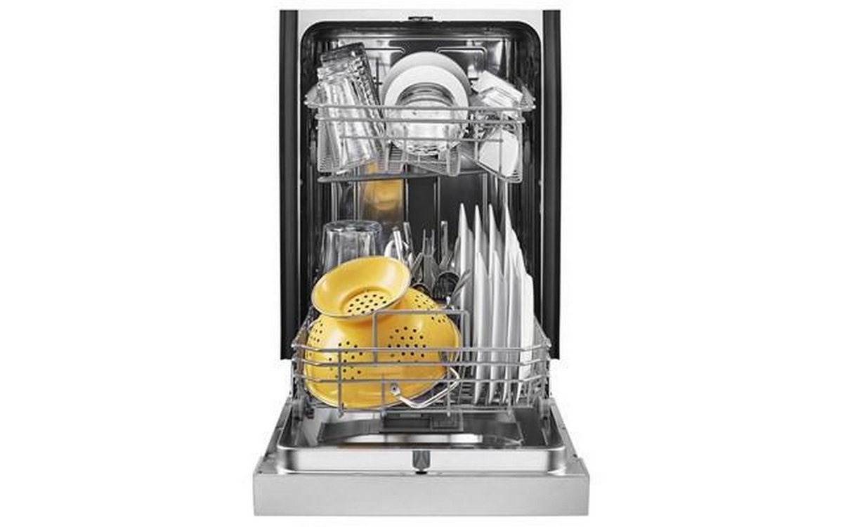 Whirlpool 18-inch front control dishwasher features 3 wash programs, a cutlery basket and a delay star.