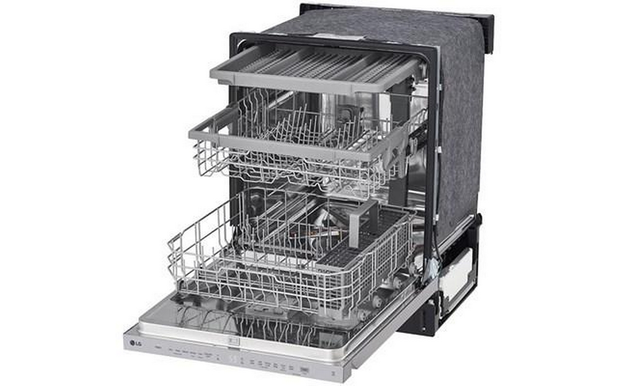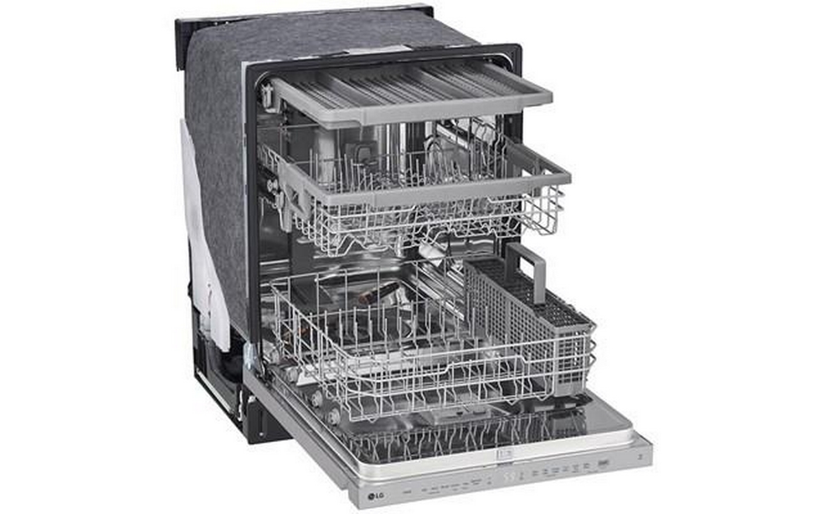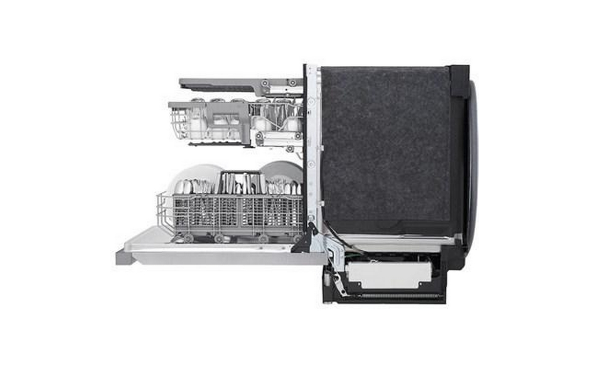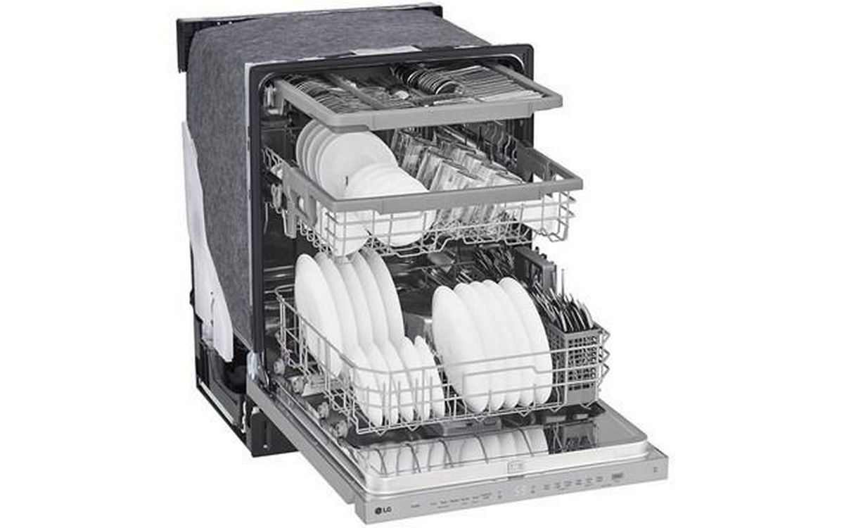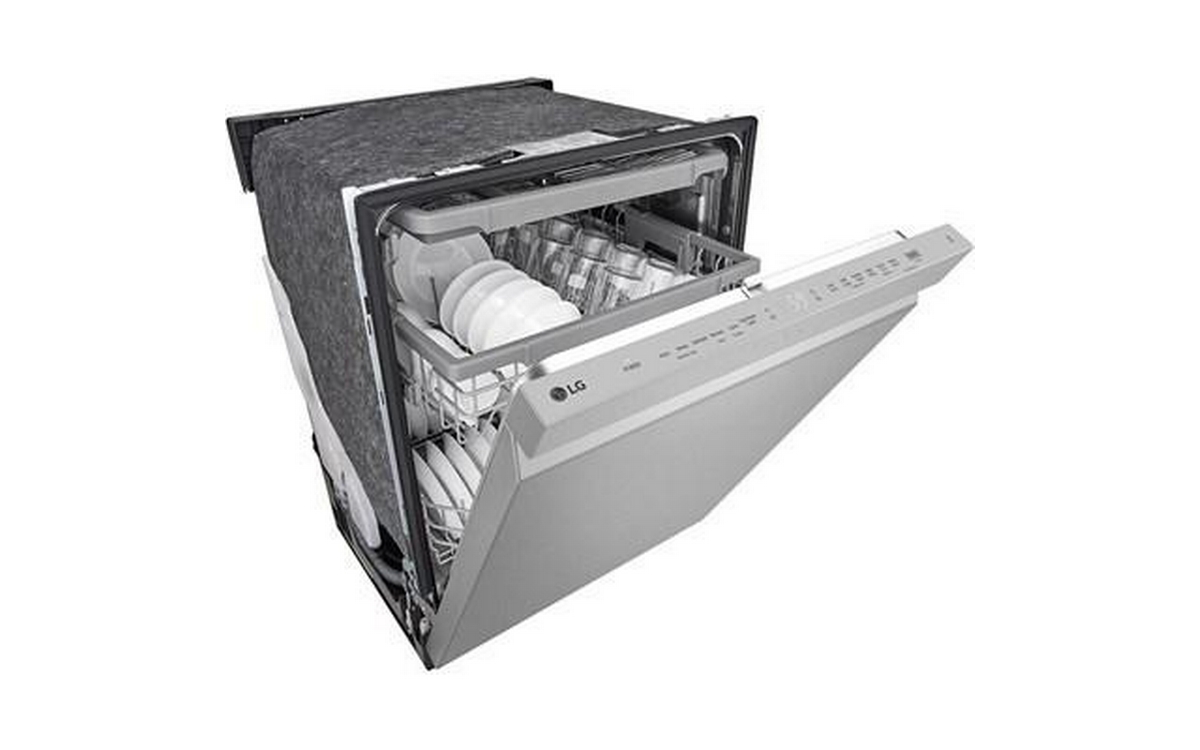 LG 24" Top Control Dishwasher with LED display featuring EasyRack Plus, QuadWash™ and Dynamic Dry™ . LG’s QuadWash® technology gets dishes clean the first time. With four spray arms instead of just two, QuadWash® uses Multi-Motion arms that rotate back and forth while spinning to power-clean dishes from multiple angles throughout the entire cycle.