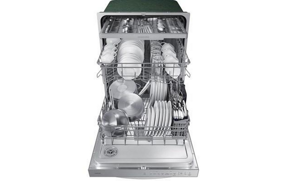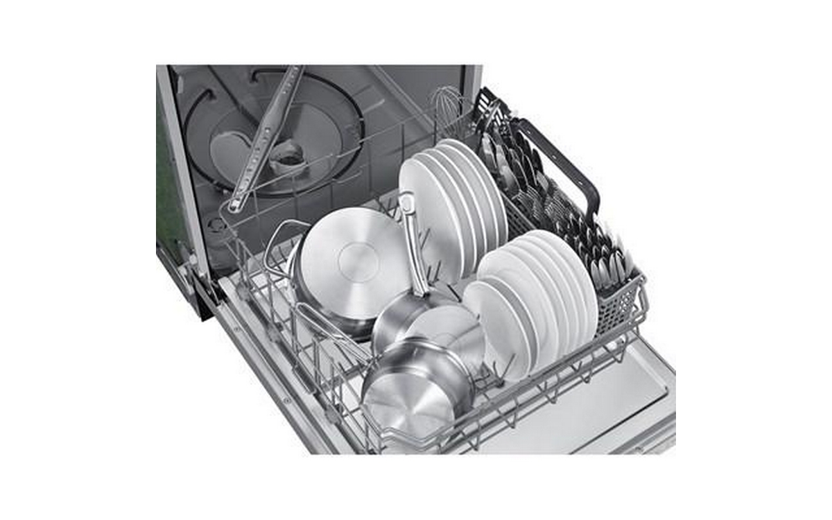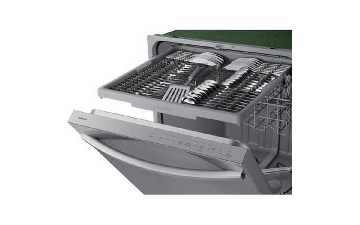 Samsung 24" top control dishwasher features AutoRelease™ door, a 3rd rack, digital touch controls and can accommodate up to 15 place settings. It offers a fingerprint resistant finish. At end-of-cycle, the AutoRelease™ Door automatically opens to door to circulate air and improve drying performance. A convenient 3rd rack provides extra space to load small mugs, utensils and silverware.