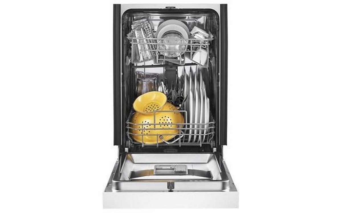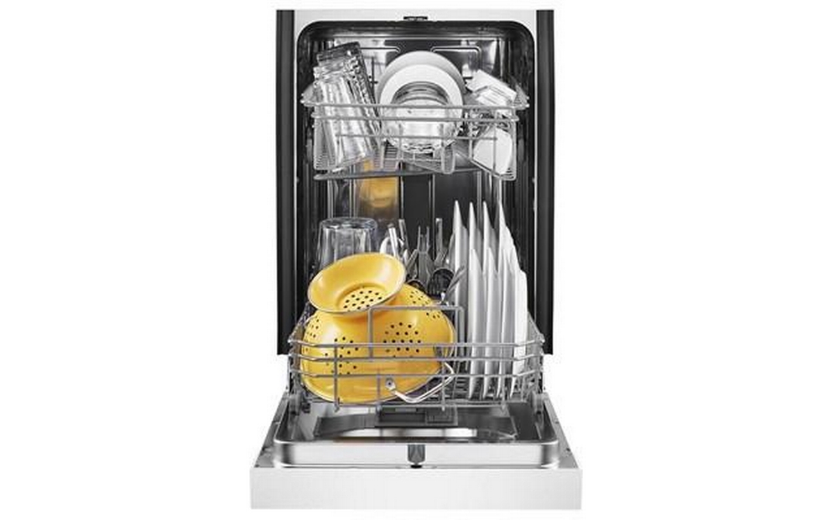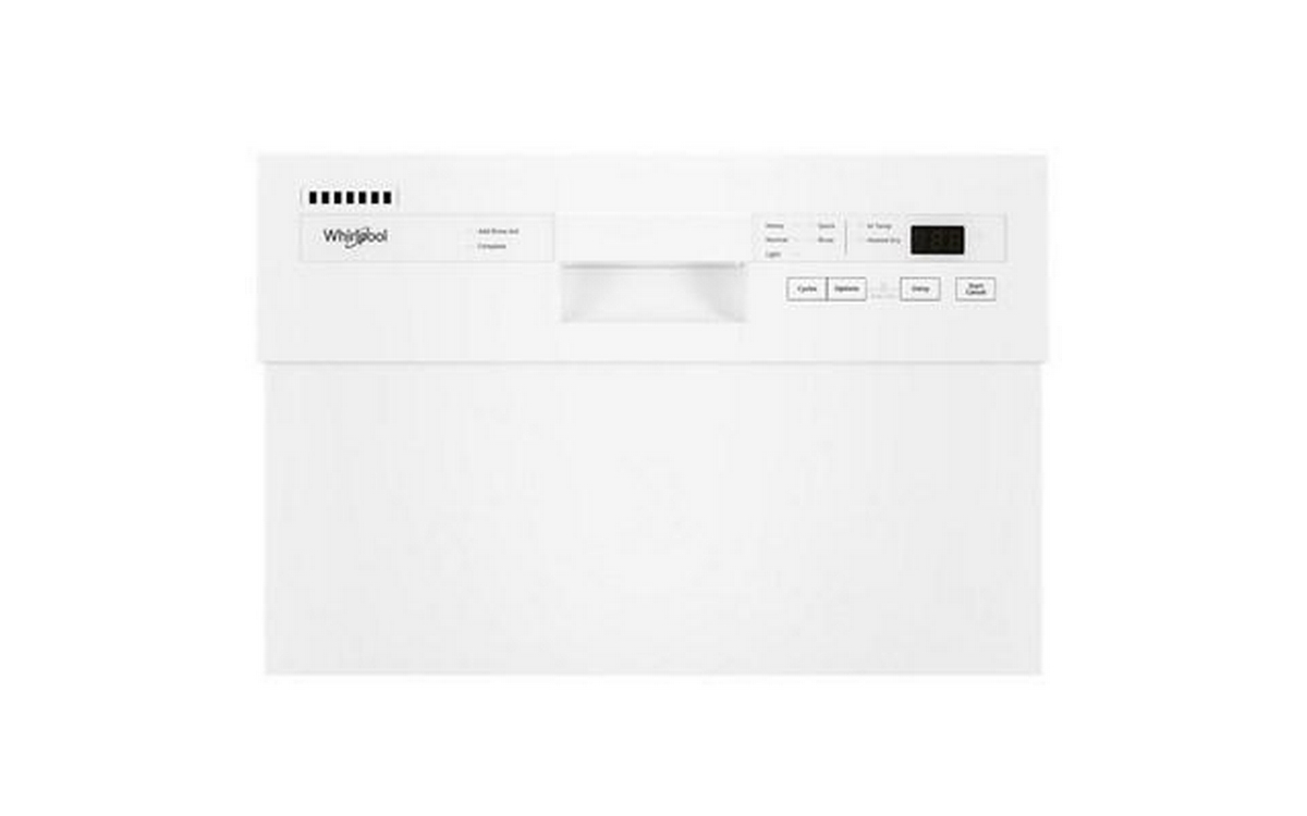 Whirlpool 18-inch front control dishwasher features 3 wash programs, a cutlery basket and a delay star.