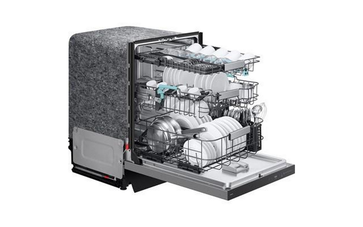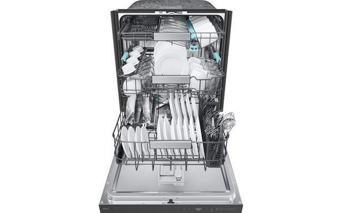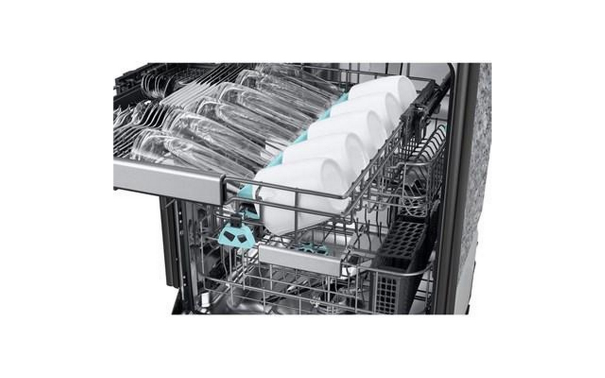 Samsung 24-inch Built-In Auto Open-Door Dishwasher w/AI Wash and Upgraded 3rd Rack Washing System. AI Wash uses a new high-resolution turbidity sensor and machine learning algorithm. It intelligently adjusts the washing and rinsing cycles to clean dishes and remove even stubborn leftover food and sticky residue without pre-rinsing.