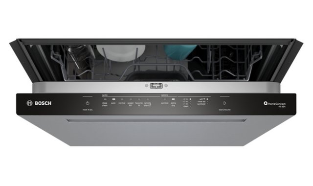 This Bosch 24" built-in dishwasher accommodates 16 place settings and operates at an ultra-quiet 44?dBA. Powered by PrecisionWash®, intelligent sensors and dynamic spray arms deliver spotless cleaning every cycle. Featuring CrystalDry® technology, it converts moisture into heat to improve drying performance by up to 60%, even for plastics. A standard third rack provides utensil storage, while RackMatic® allows nine upper rack height adjustments for loading flexibility. Other benefits include InfoLight® that projects a light on the floor during operation, a stainless steel tub with anti-fingerprint finish, AquaStop® 24/7 leak protection, and Wi-Fi with Home Connect for remote control, app alerts, and personalized wash cycles.