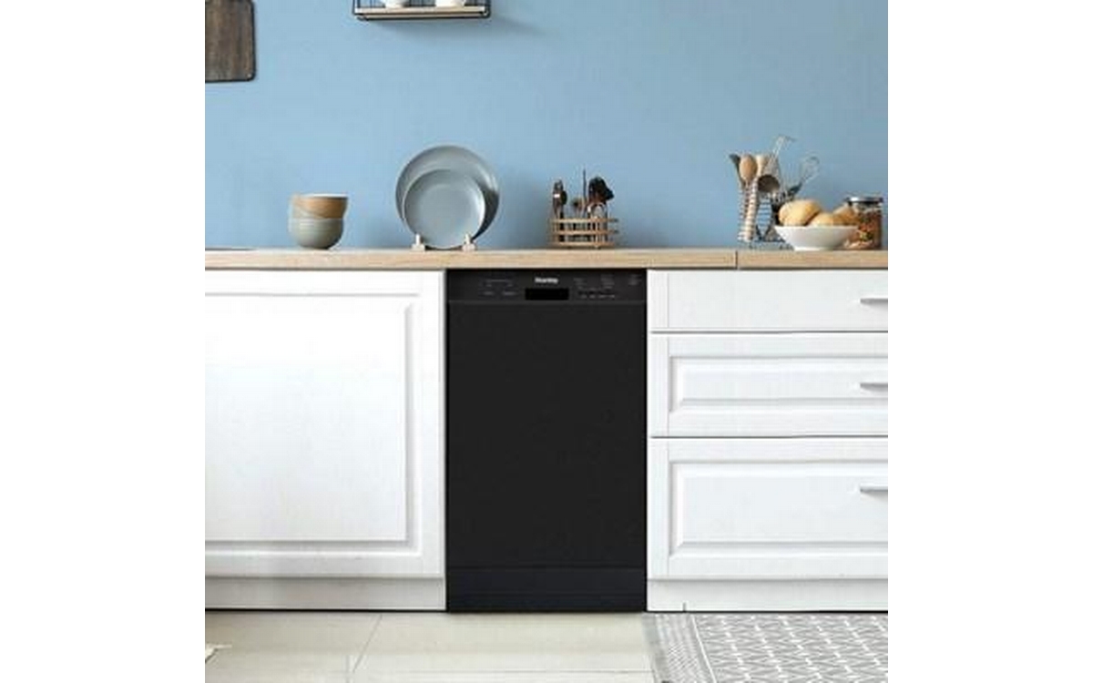 Save time and money with Danby’s 18” ENERGY STAR compliant dishwasher - space-saving for small space living. This all-black, built-in dishwasher holds up to 10 place settings and one silverware basket. It has 4 wash cycles to choose from: Regular, Auto, Intensive & Quick; plus sanitize mode. Equipped with a stainless steel tub, this dishwasher can withstand years of washes. And at only 51db, less than the volume of a normal conversation, this dishwasher runs quietly in the background. The delay-start feature allows you to pre-select a desired start time so your dishes get washed on your schedule. Take the pain out of washing dishes with the Danby 18” built-in space saving dishwasher.