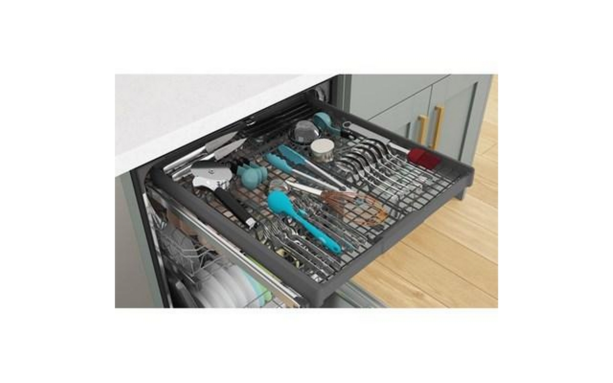 Load more, run less in this dishwasher with 3rd Rack. Load hard-to-fit utensils or measuring spoons in the 3rd Rack to free up more space for dishes below. You can even fit taller items where you want thanks to the adjustable rack. Plus, you can move or separate the flexible 3-Piece Silverware Basket to make extra space.