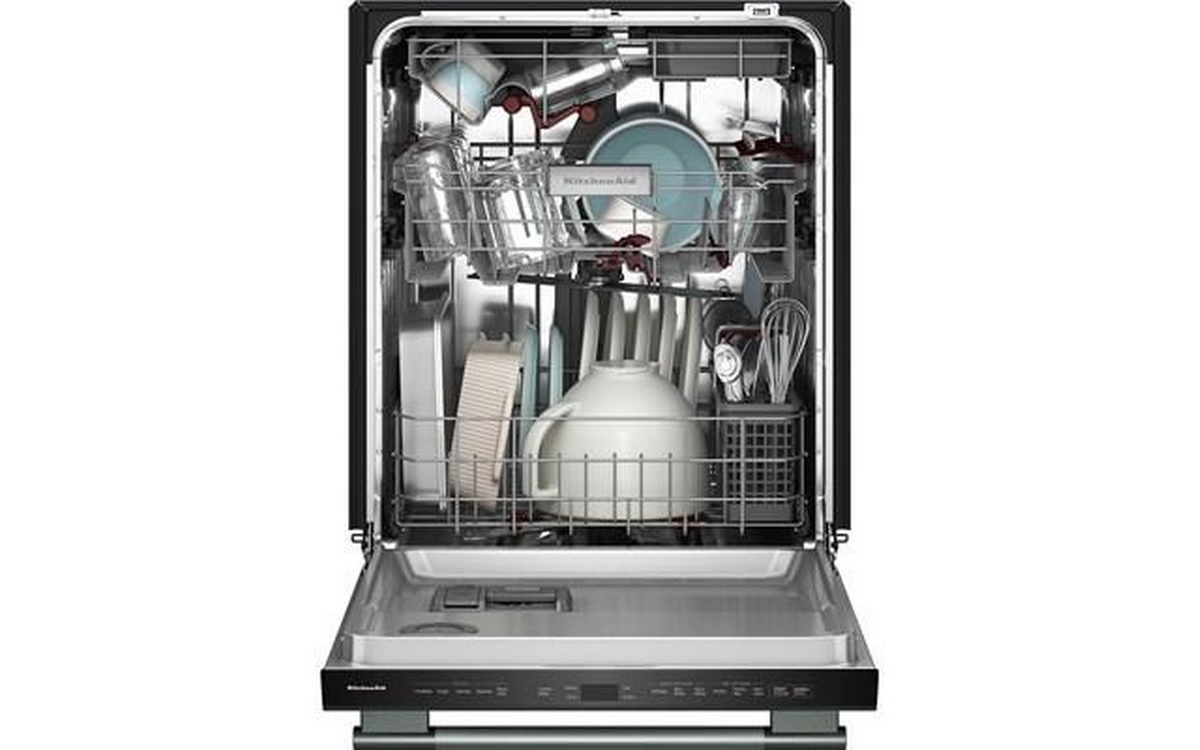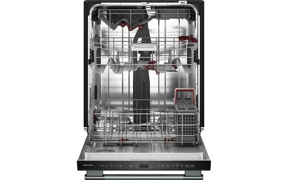 Say hello to the only way to dish. This top control dishwasher with a Towel Bar Handle has 50+ Total Wash Jets across 5 wash arms that offer targeted cleaning across the entire 7.25 cu.ft. MaxTub Largest dishwasher Tub*. 360° Max Jets™ Third Rack uses 360° wash jets to clean glasses, mugs and bowls. Advanced ProDry™ System serves up KitchenAid brand's driest dry. True Self-Cleaning Filtration eliminates manual filter cleaning by continuously circulating clean water during wash and rinse cycles.