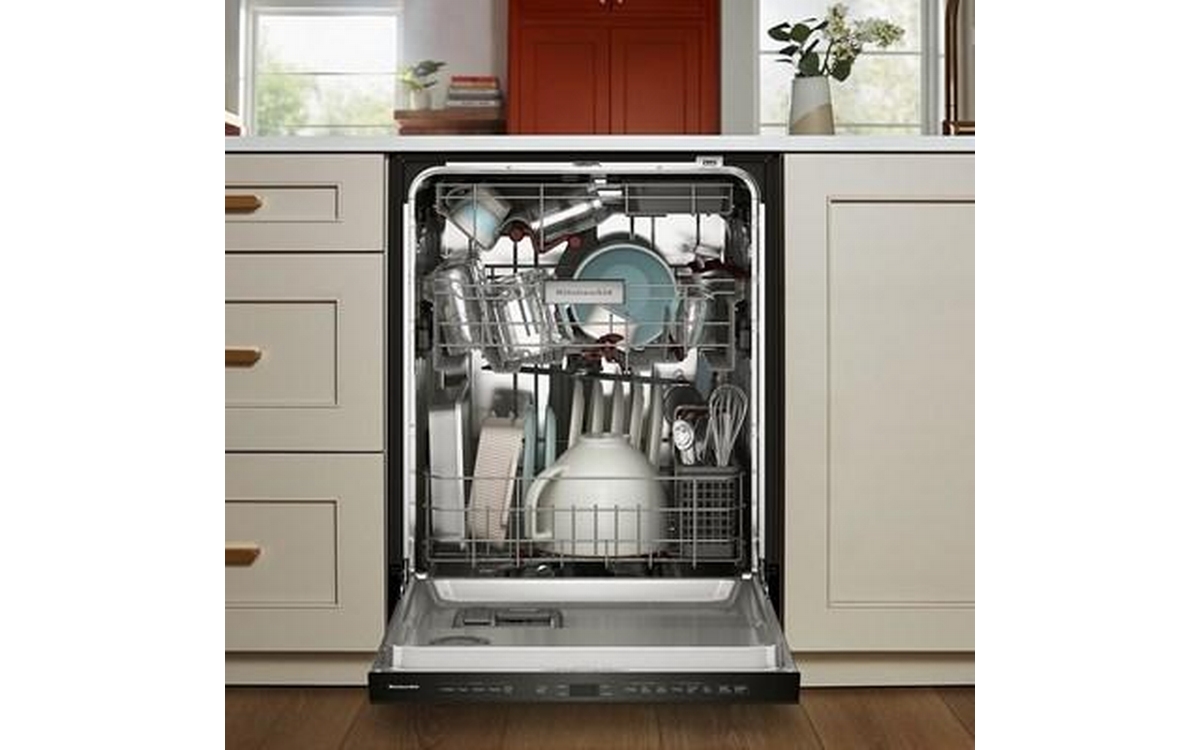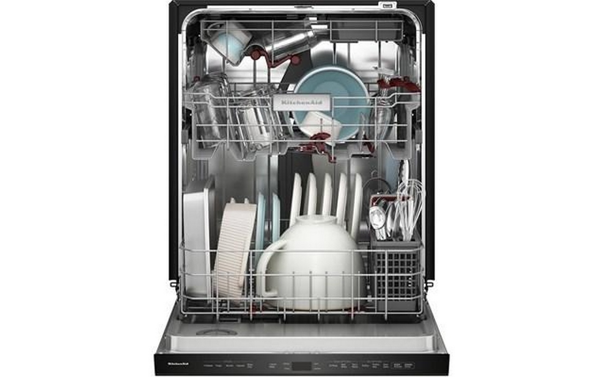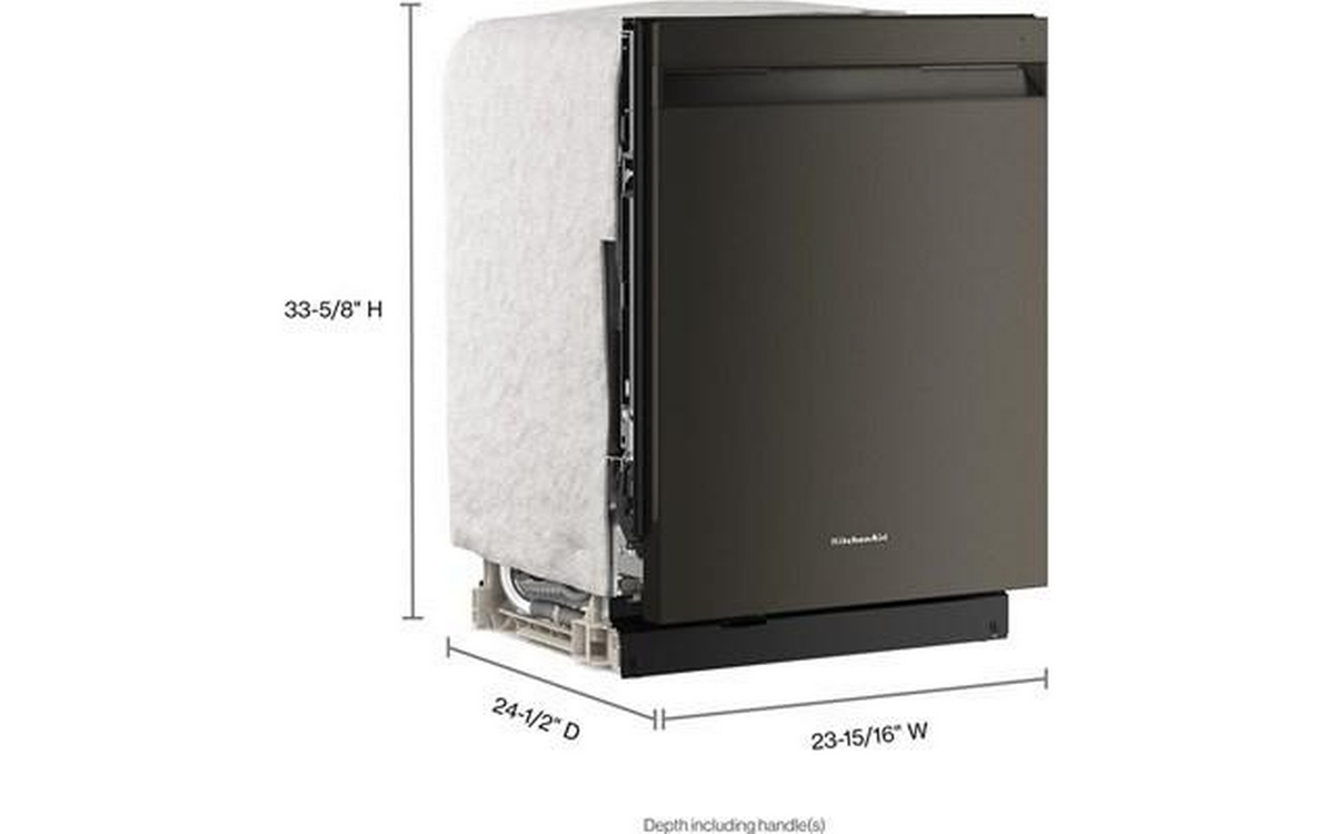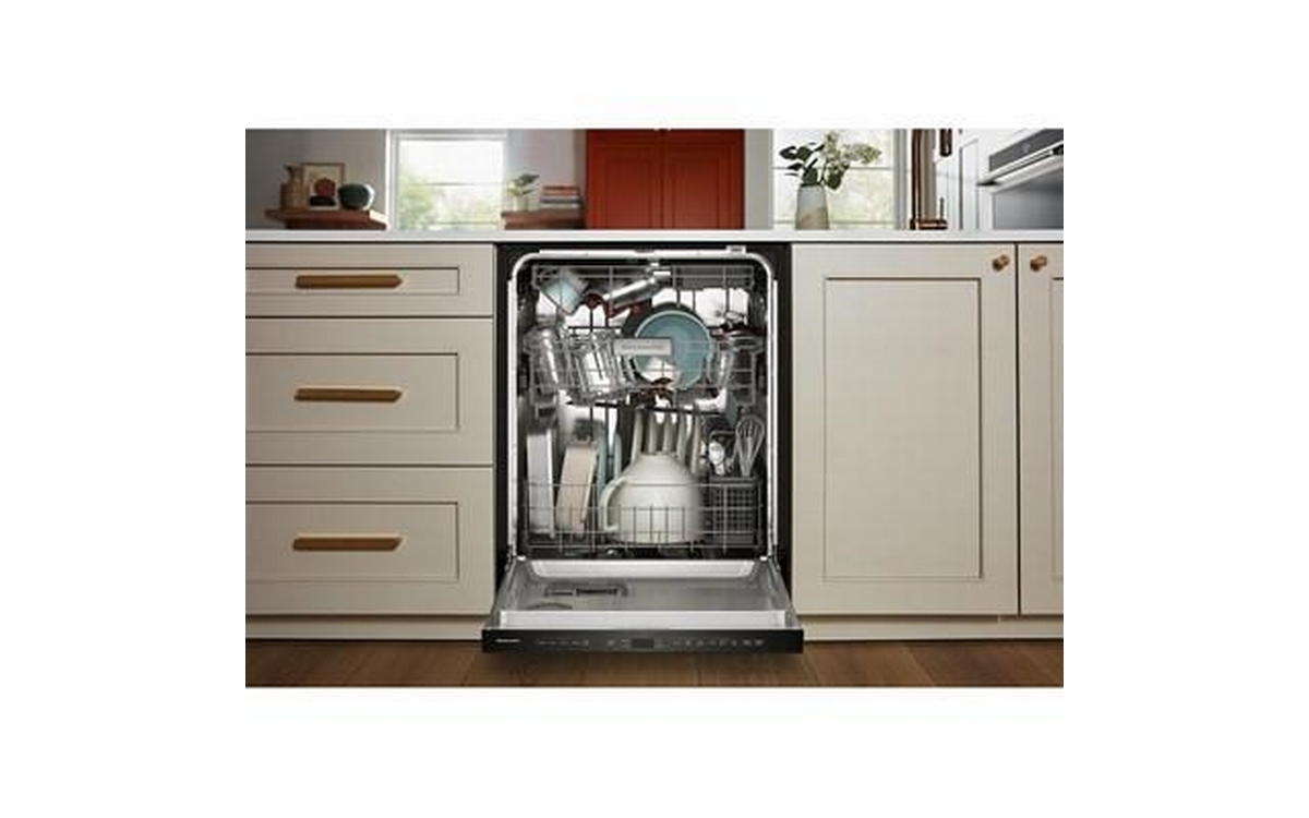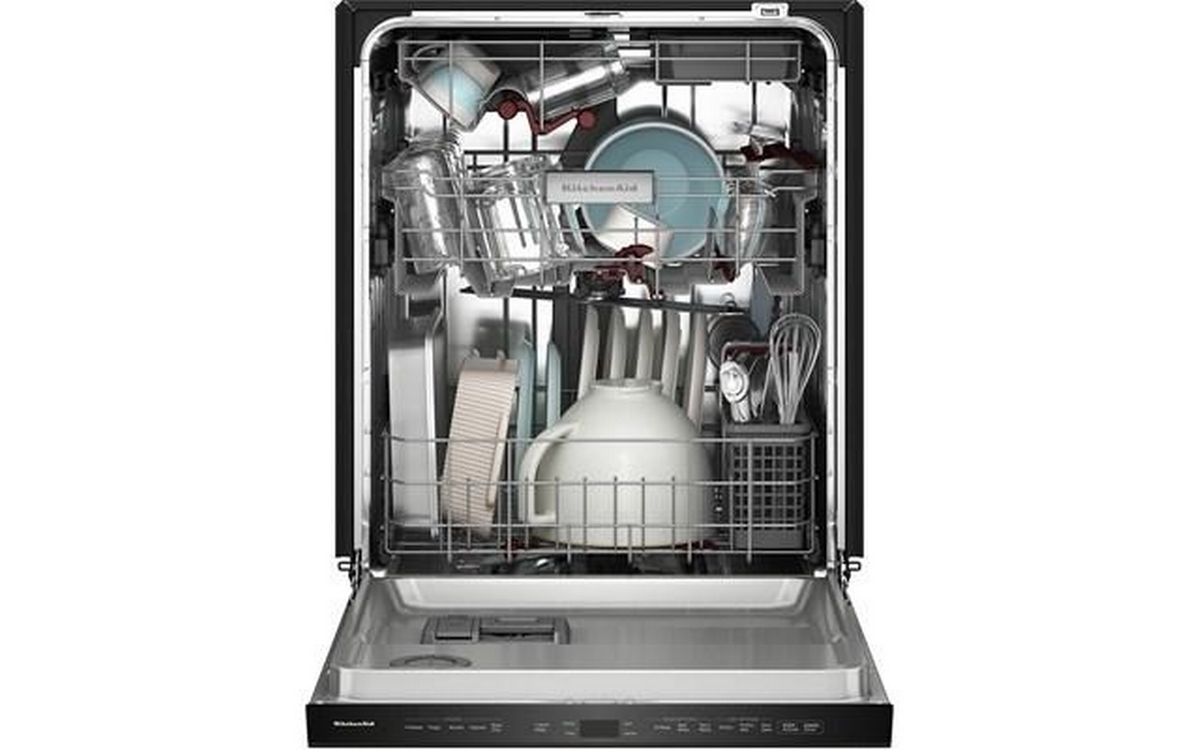 Say hello to the only way to dish. This top control dishwasher with a pocket handle has 50+ Total Wash Jets across 5 wash arms that offer targeted cleaning across the entire 7.25 cu.ft. MaxTub Largest dishwasher Tub*. 360° Max Jets™ Third Rack uses 360° wash jets to clean glasses, mugs and bowls. Advanced ProDry™ System serves up KitchenAid brand's driest dry. True Self-Cleaning Filtration eliminates manual filter cleaning by continuously circulating clean water during wash and rinse cycles.