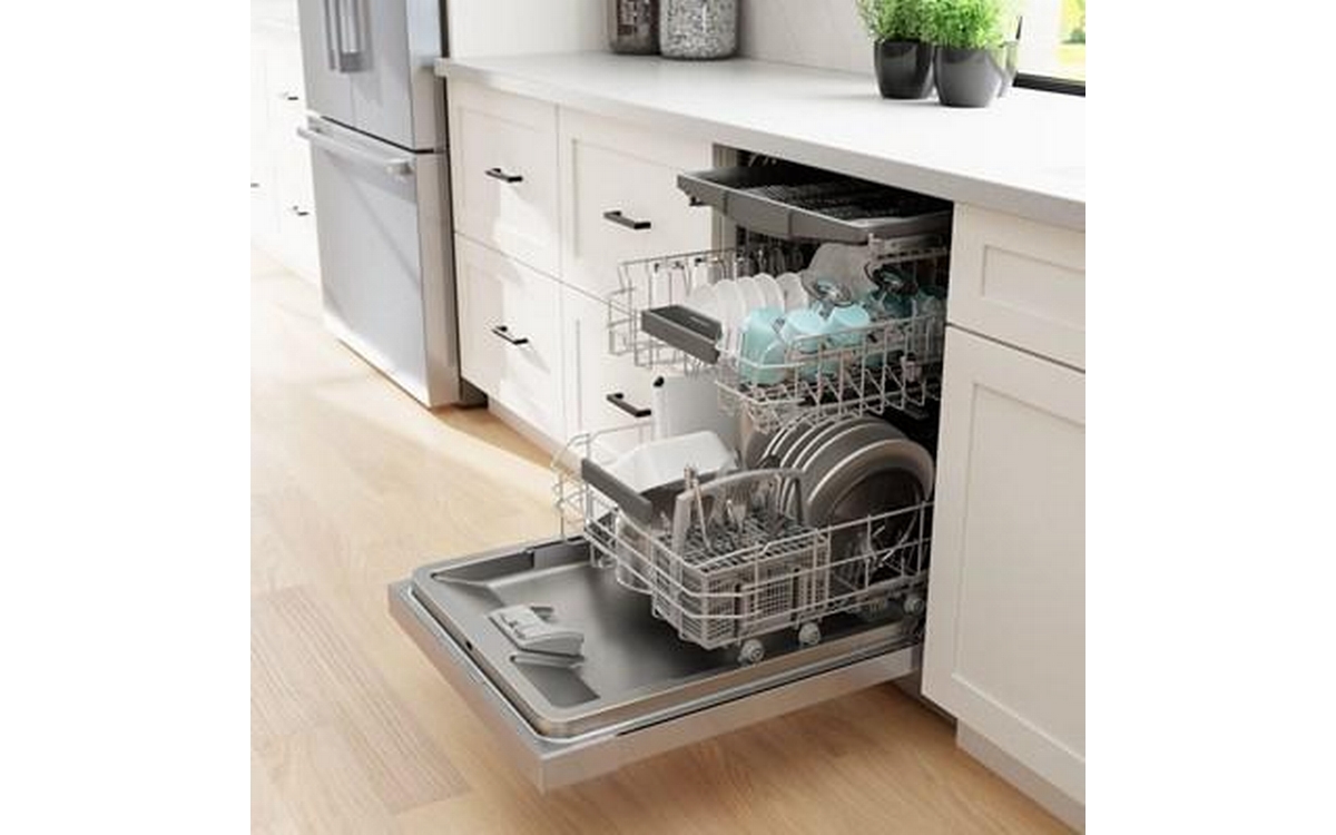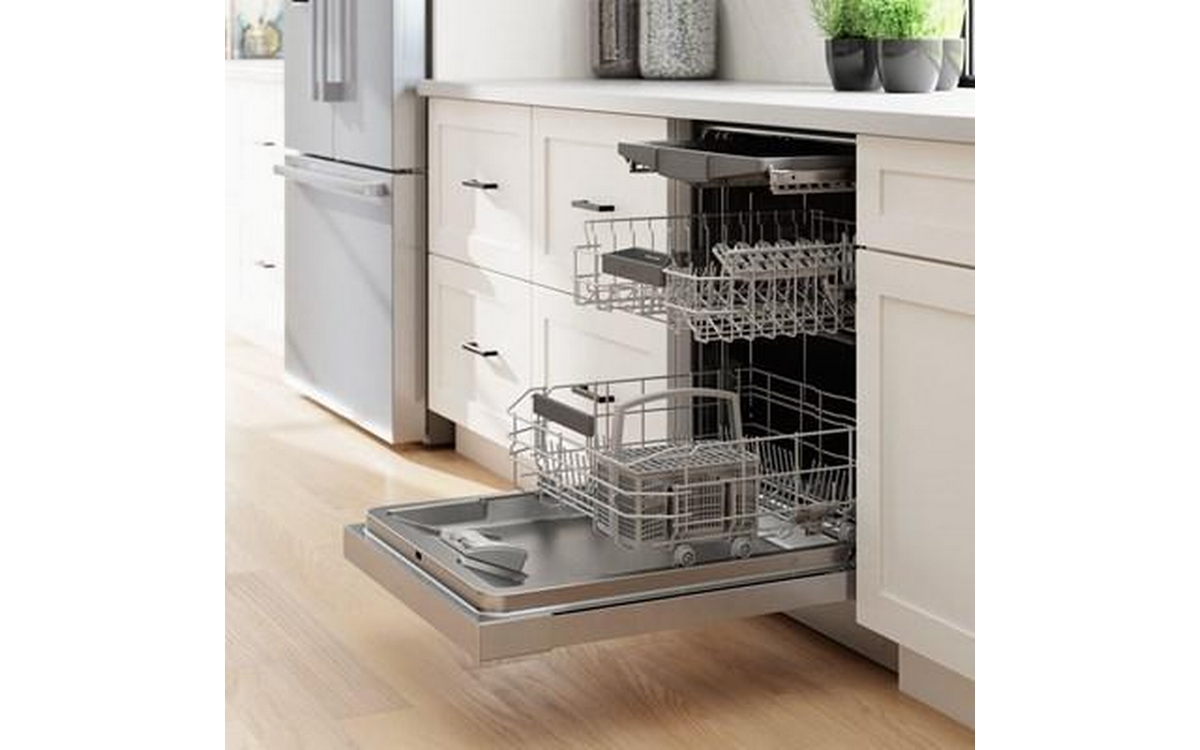 Bosch 24-inch, 300 Series front control dishwasher features HomeConnect, AquaStop® leak protection system, 6 wash programs and can accommodate up to 15 place Settings.