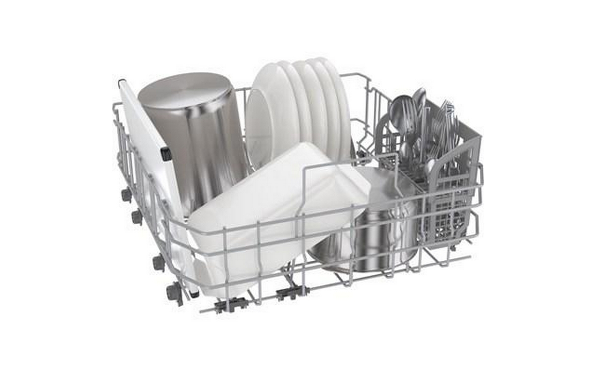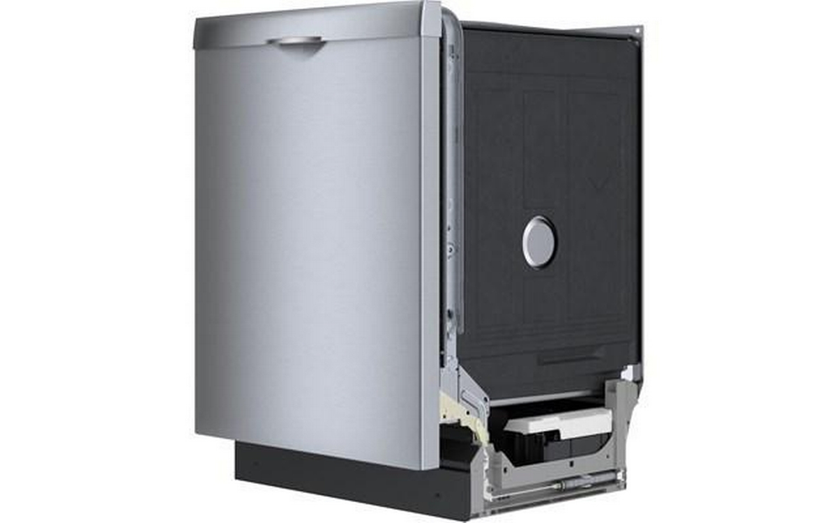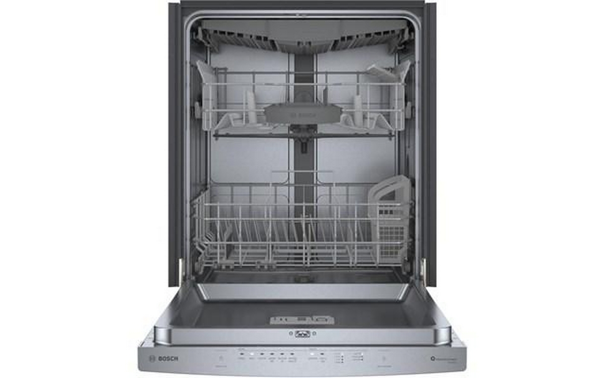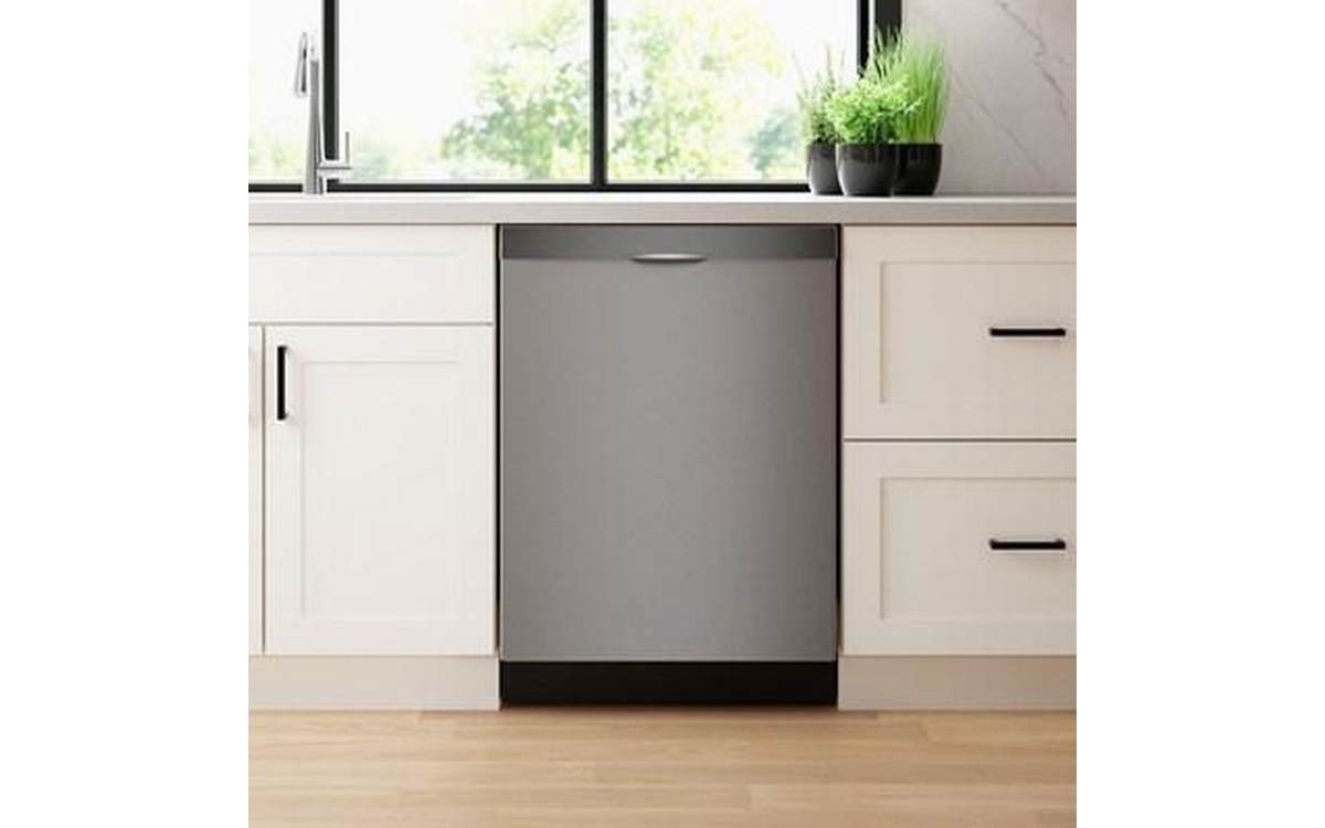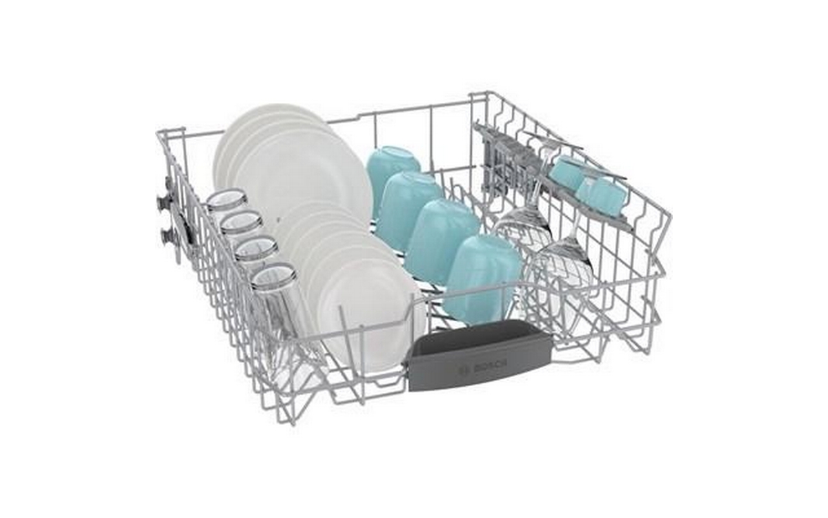 Bosch 24-inch scoop handle dishwasher features PrecisionWash® wash system, PureDry® drying system and can accommodate up to 16 place settings.