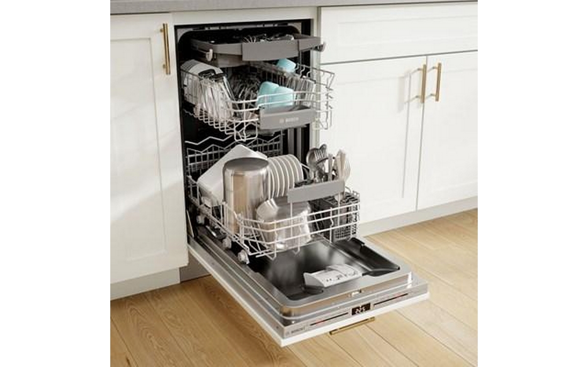 Bosch Full-integrated 18-inch Top Control Dishwasher featuring PrecisionWash® , CrystalDry™ and Standard 3rd Rack. Bosch PrecisionWash®, simply start your dishwasher and walk away. Intelligent sensors continually scan and check the progress of dishes throughout the cycle, and powerful, precision spray arms go to work targeting every item of every load. So when your dishes are done, so are you.