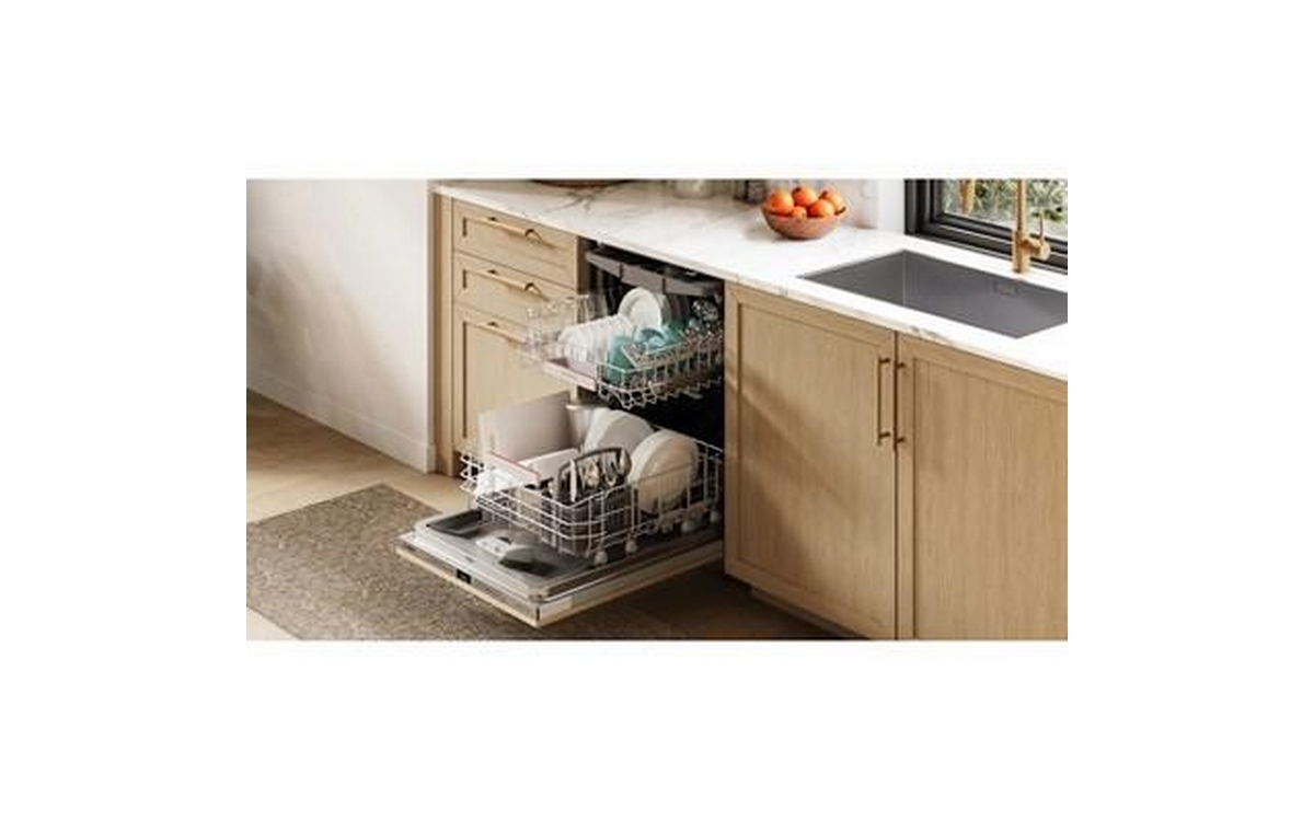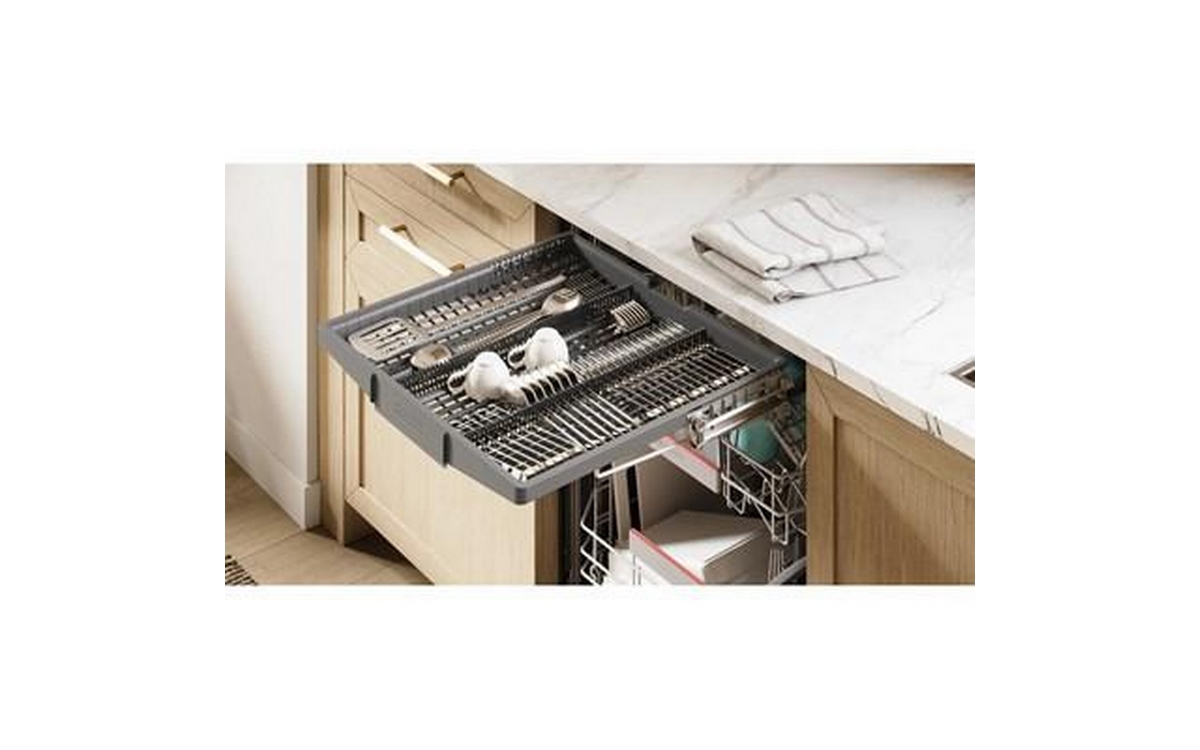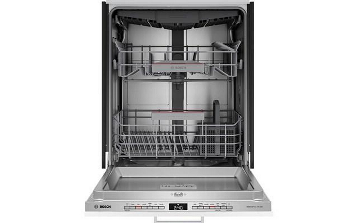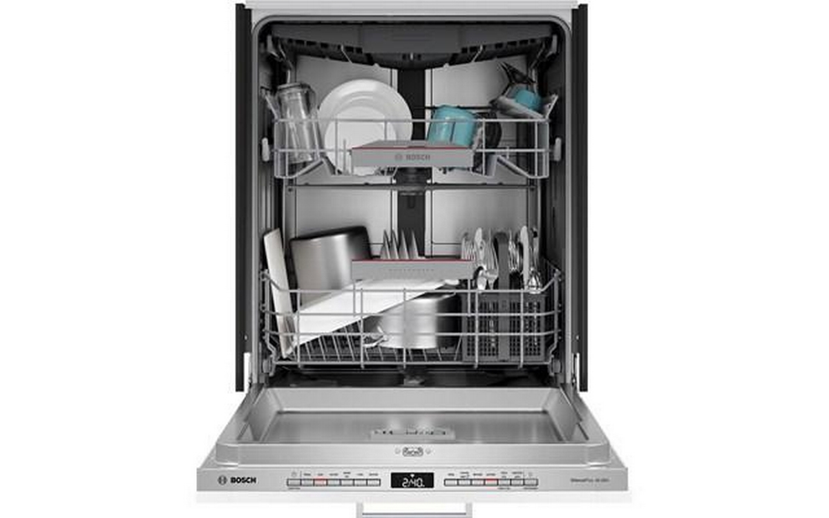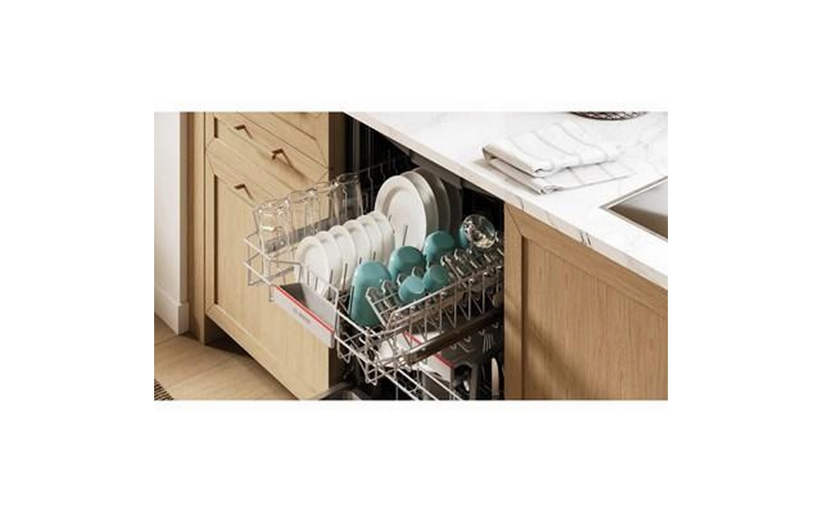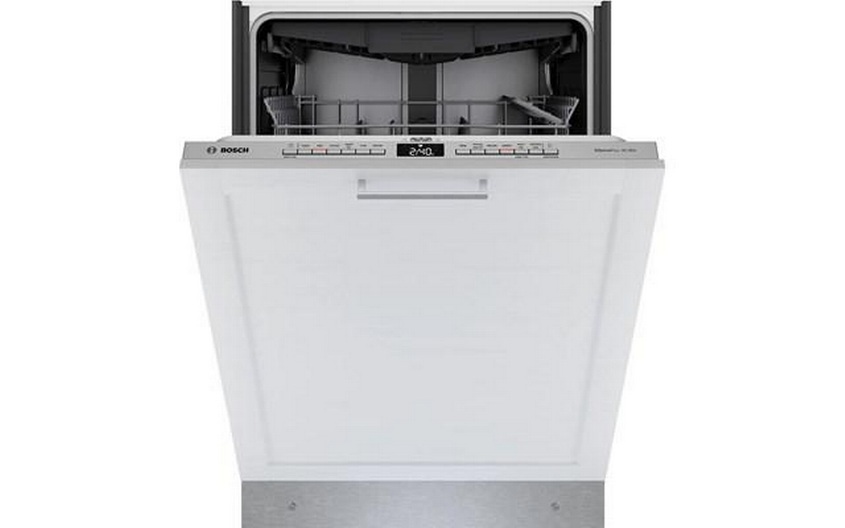 This Bosch 24-inch top control dishwasher features PrecisionWash®, PureDry®, Rackmatic®, and can accommodate up to 15 place settings. (Panel Sold Separately)