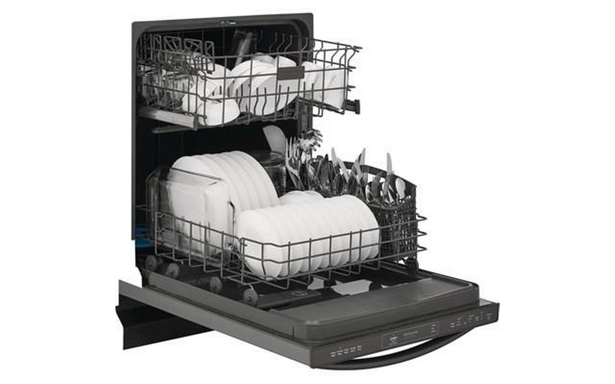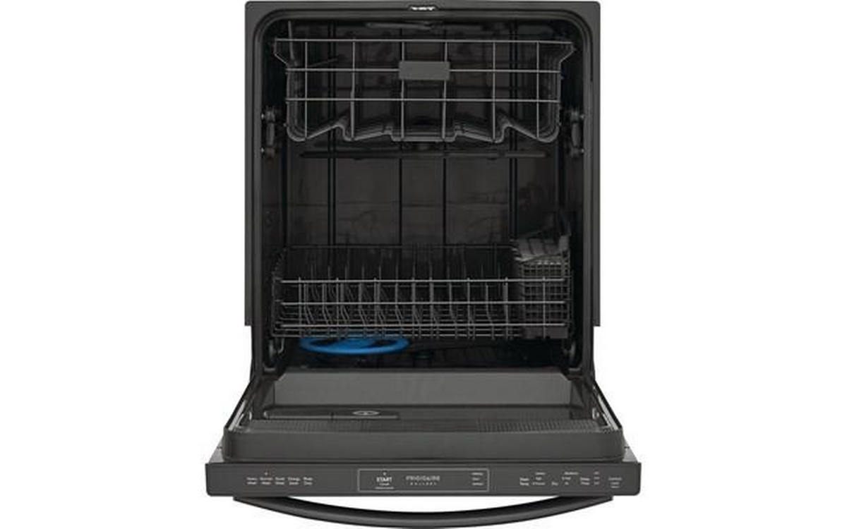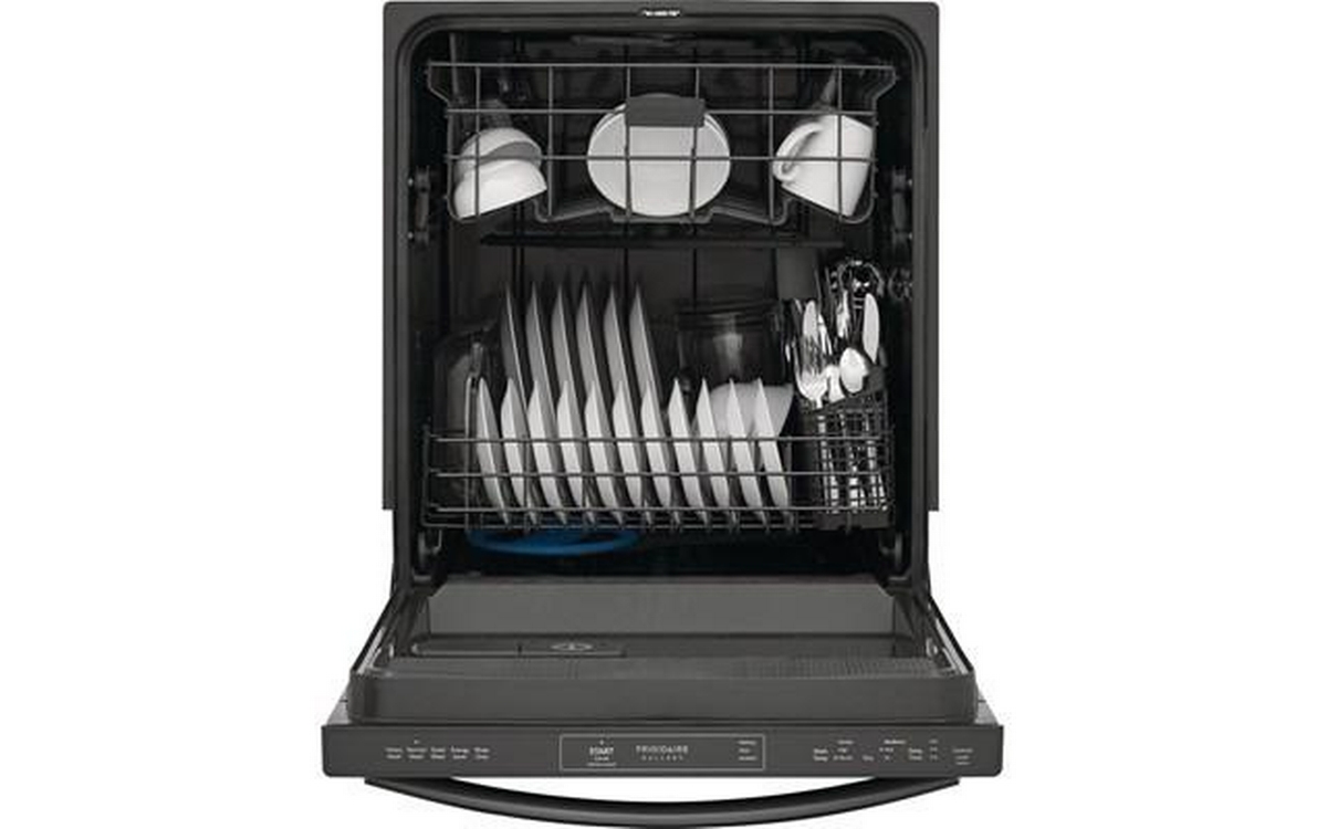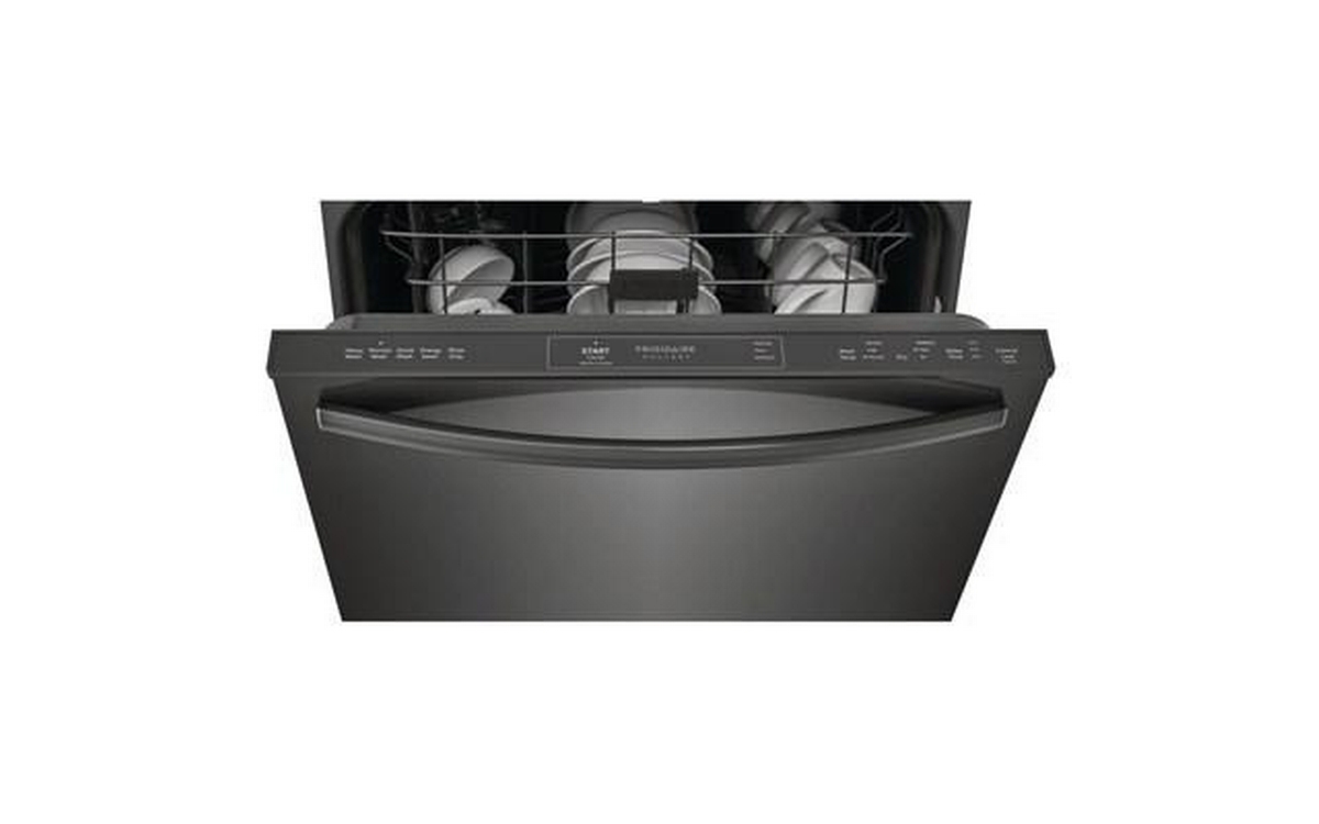 Frigidaire Gallery top control dishwasher features 5 wash programs, silverware basket, status indicator floor beam and can accommodate up to 14 place settings.