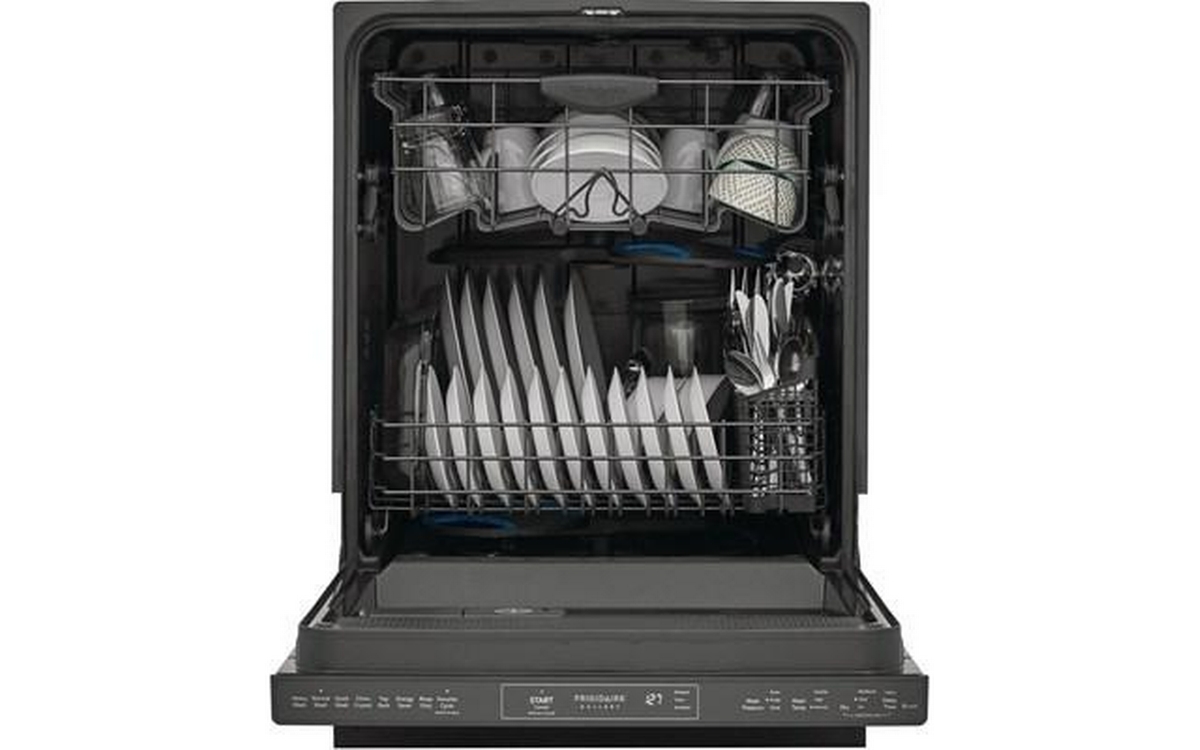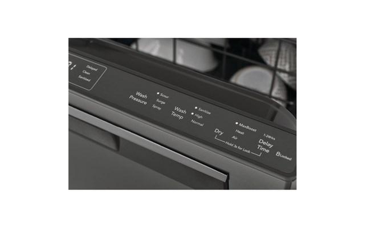 Frigidaire Gallery top control dishwasher features 8 wash programs, delay start (24 hours), 5 wash levels and can accommodate up to 14 place settings.