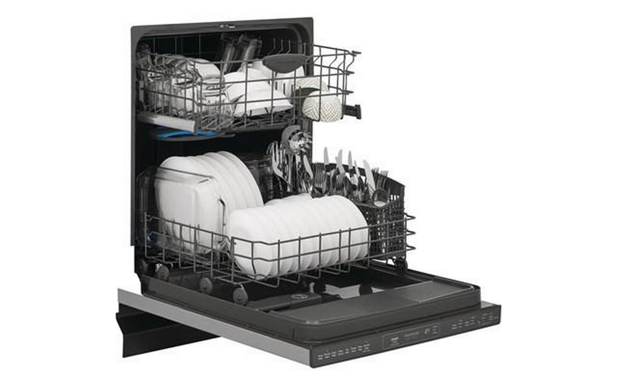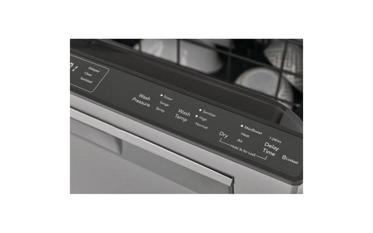 Frigidaire Gallery top control dishwasher features 8 wash programs, delay start (24 hours), 5 wash levels and can accommodate up to 14 place settings.