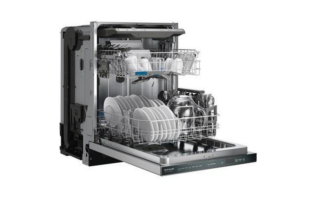 Frigidaire Gallery 24-inch top control dishwasher features CleanBoost™, 7 wash programs, stainless steel tub and can accommodate up to 14 place settings.