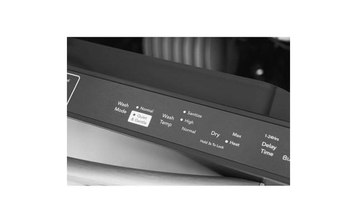 This 24" Frigidaire Gallery top control dishwasher offers a more complete clean with sensor technology that adjusts cleaning performance based on soil level, with an ultra-quiet 42 dBa operation.