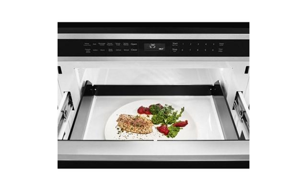 Give your kitchen more room for creativity with an ingenious top-loading microwave oven drawer that installs in your wall or island, saving you valuable countertop space for food preparation. Opening and closing the drawer are one-touch simple. Sensor cooking functions deliver precise control. 950 watt cooking power and 1.2 cu. ft. capacity handle a variety of foods with ease.