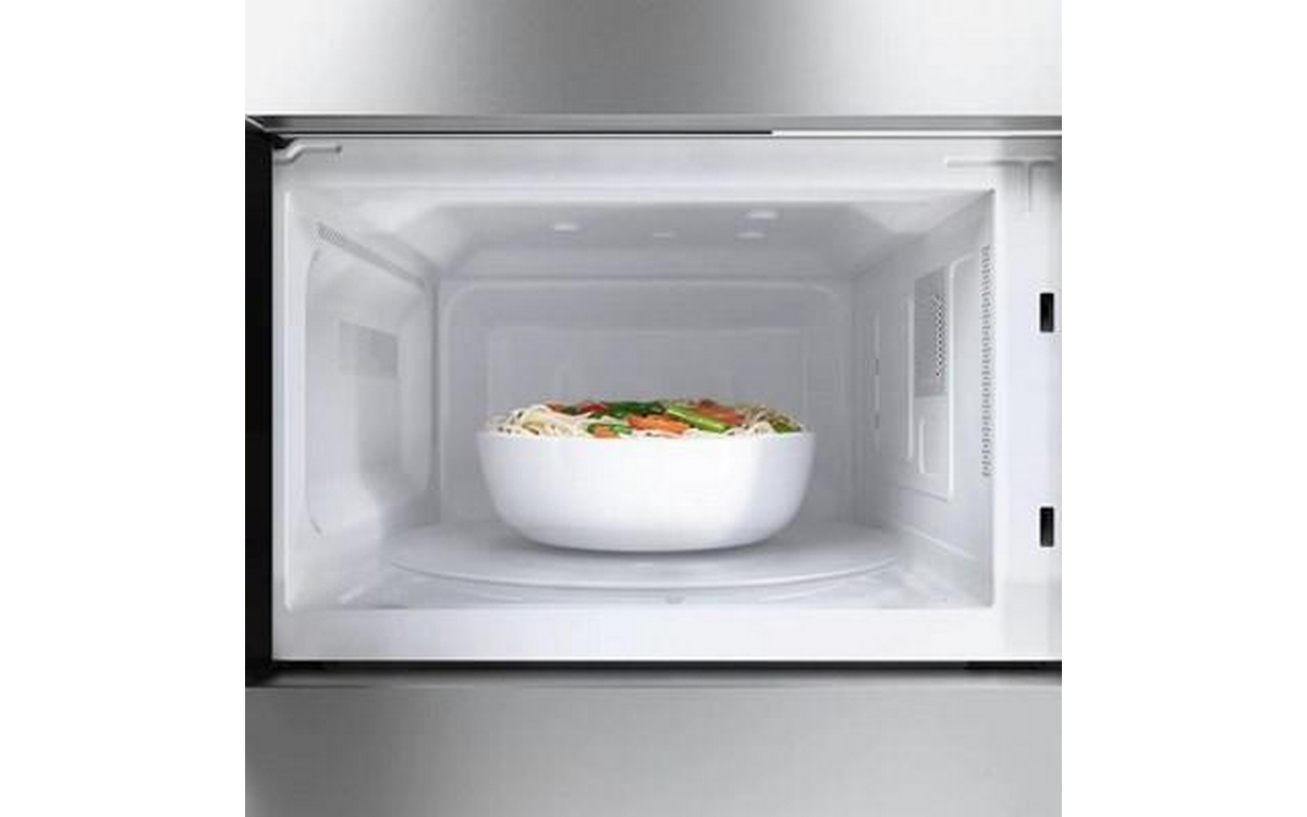 The Bosch 300 Series 24'' Built-In Microwave Oven features a left side-opening door for easy access, offering a sleek and modern design. It provides efficient cooking and reheating, making it a versatile addition to any kitchen.