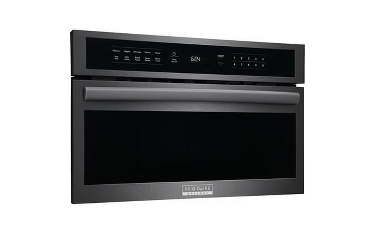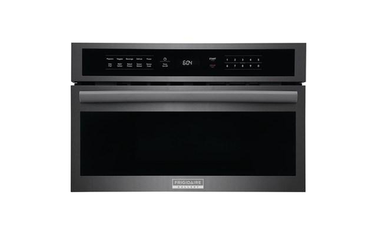 Frigidaire Gallery built-in microwave oven features a drop-down door, 950 watts of power and sensor cooking.