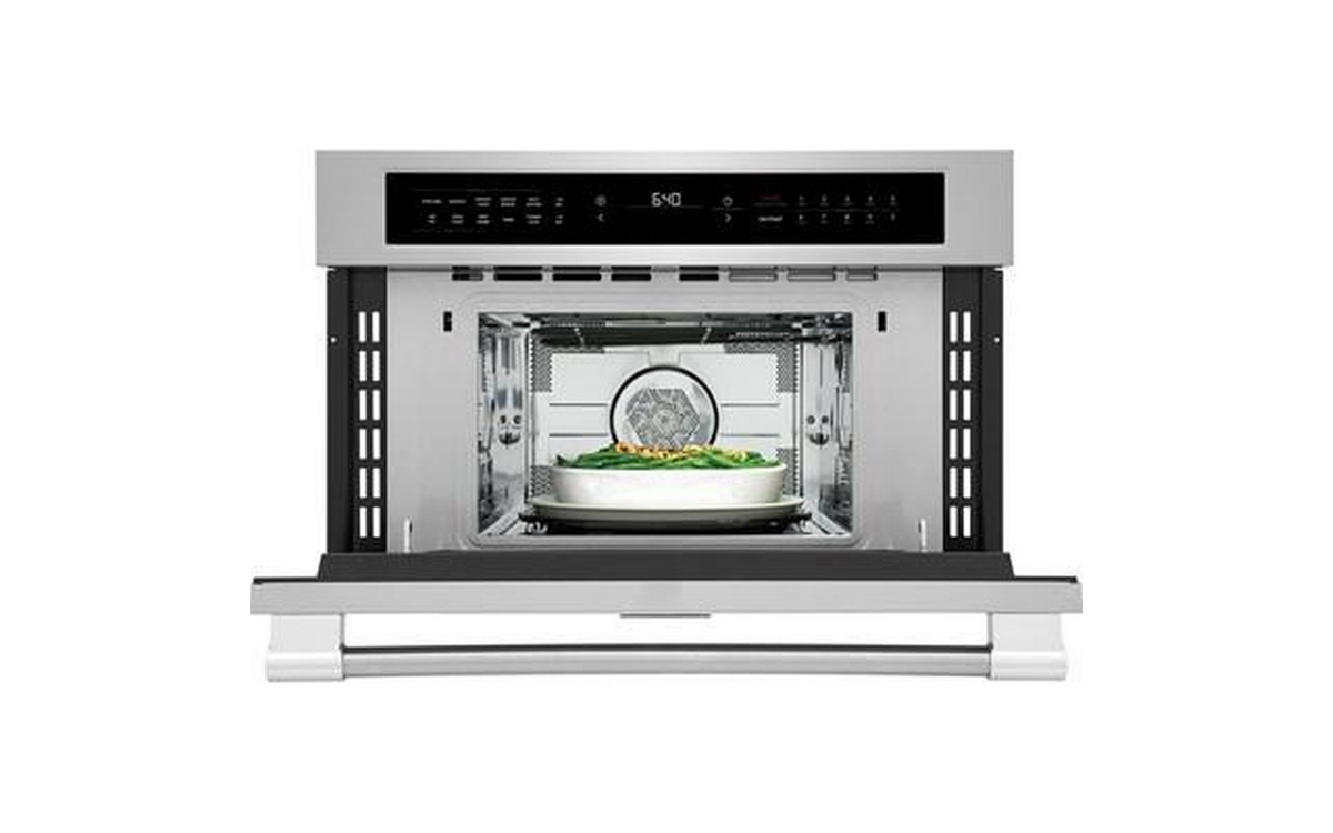 The Frigidaire Professional Built In Drop Down Door Microwave with Air Fry allows you to make crispy delicious meals with little to no oil, along with a powerful, 1700-Watt convection system for even heat distribution and perfectly cooked dishes. Sensor Cooking options provide effortless temperature control, while bright LED interior lighting makes it easier to see what's cooking inside of the microwave. Finished in Smudge-Proof Stainless Steel, it offers a sleek, modern look that resists fingerprints.